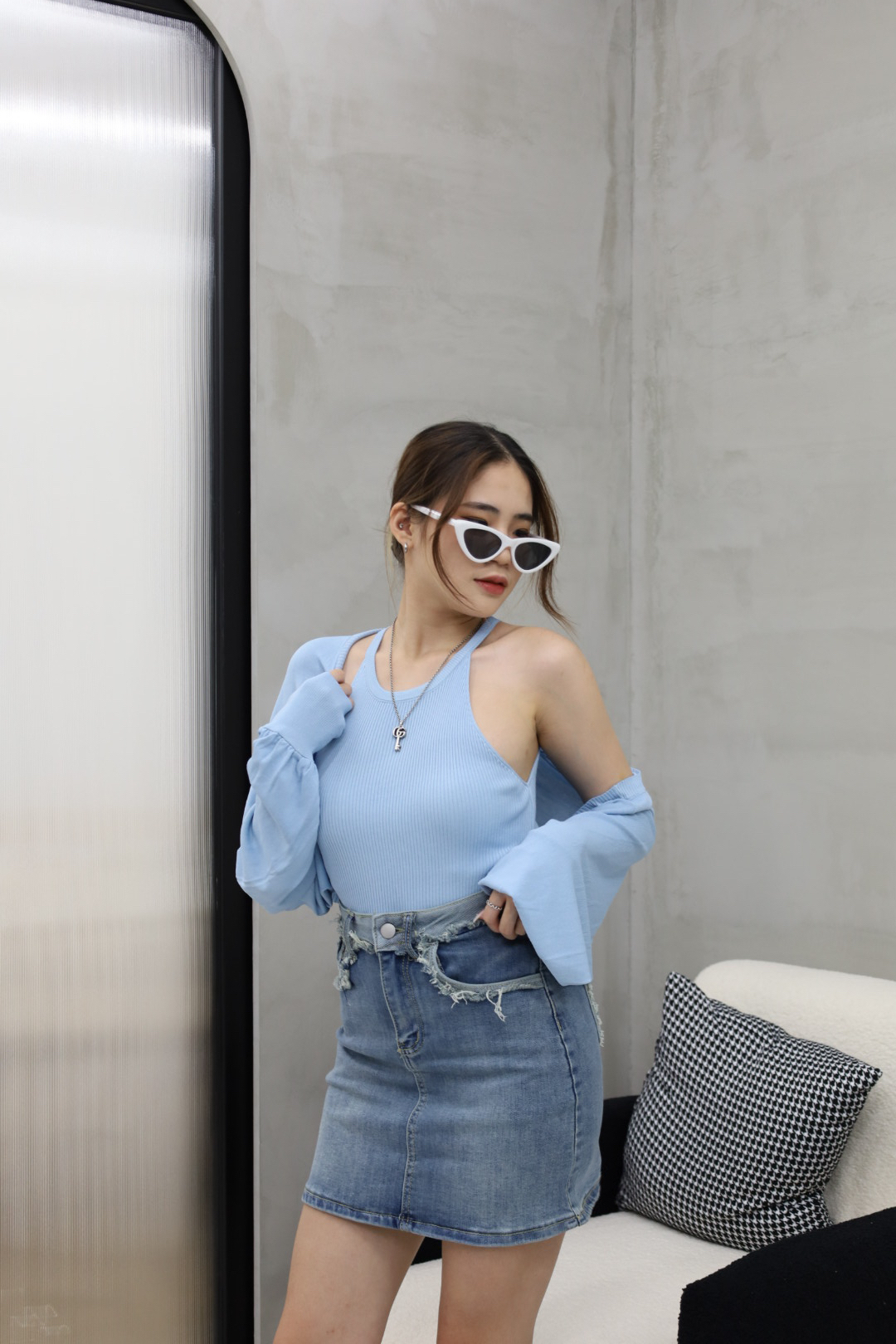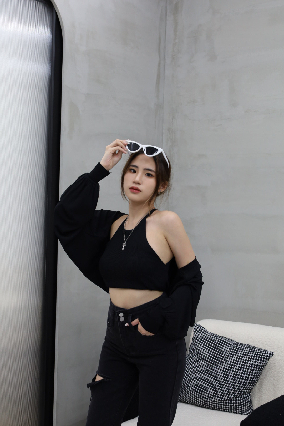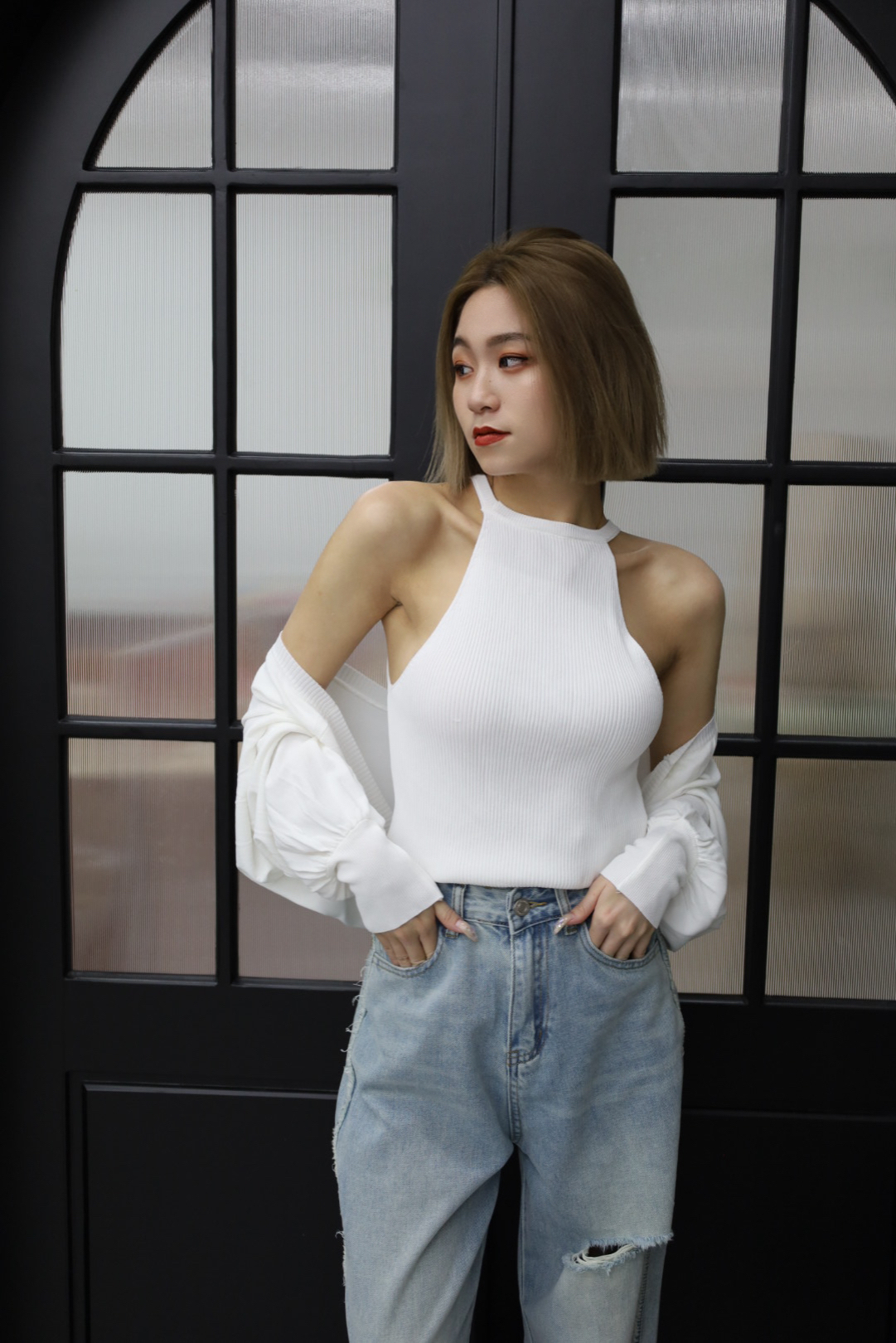 辣妹也可以單穿削肩背心!