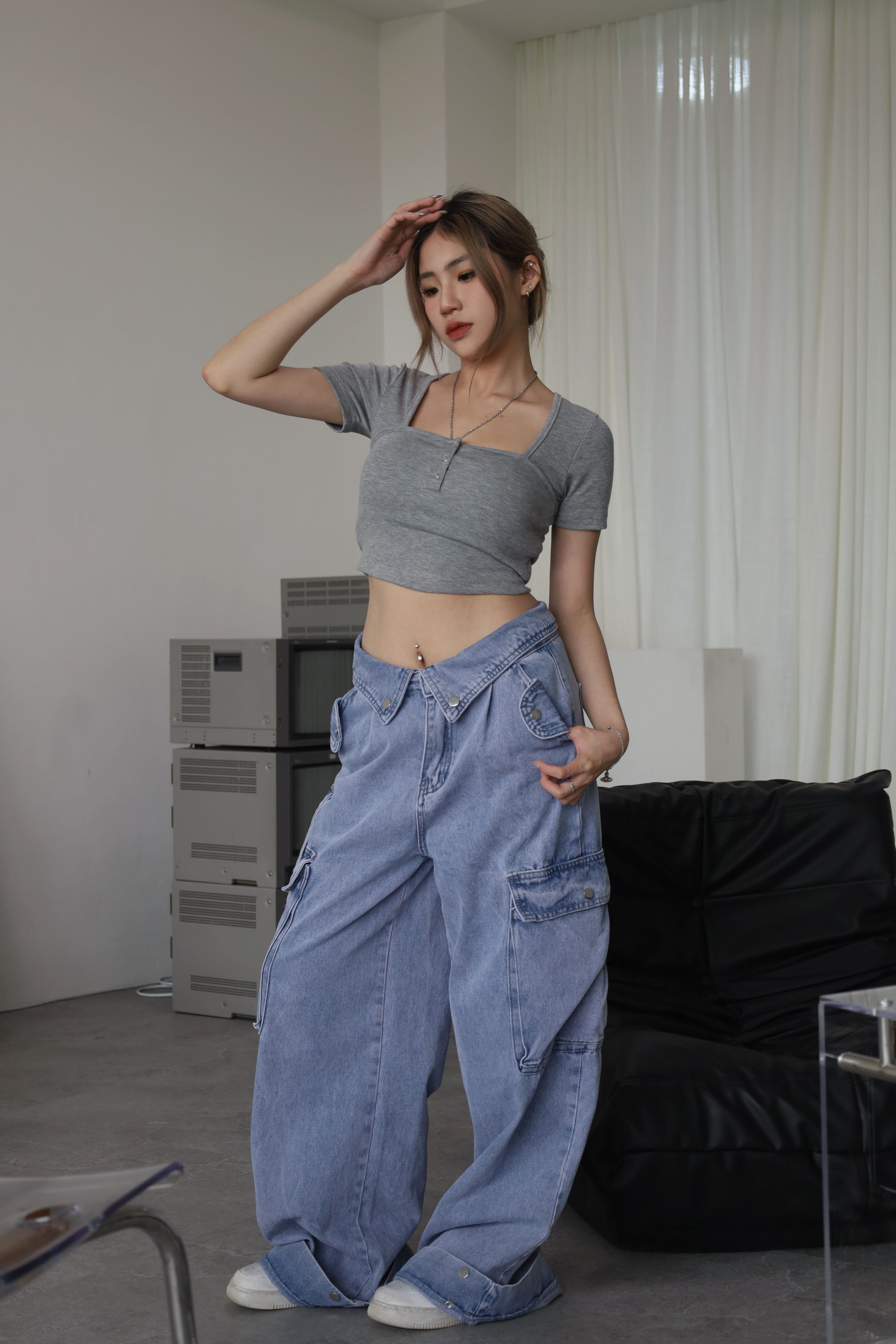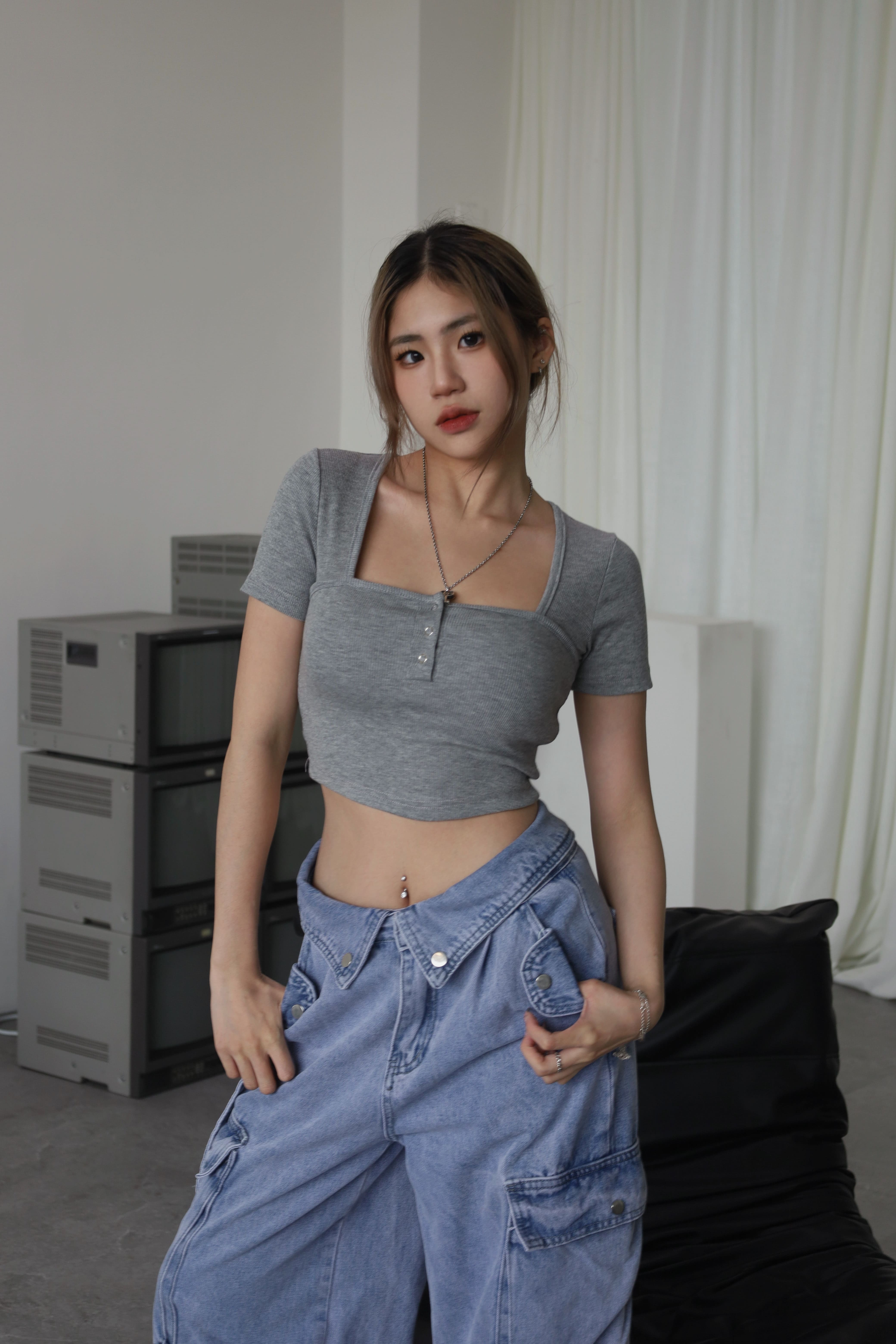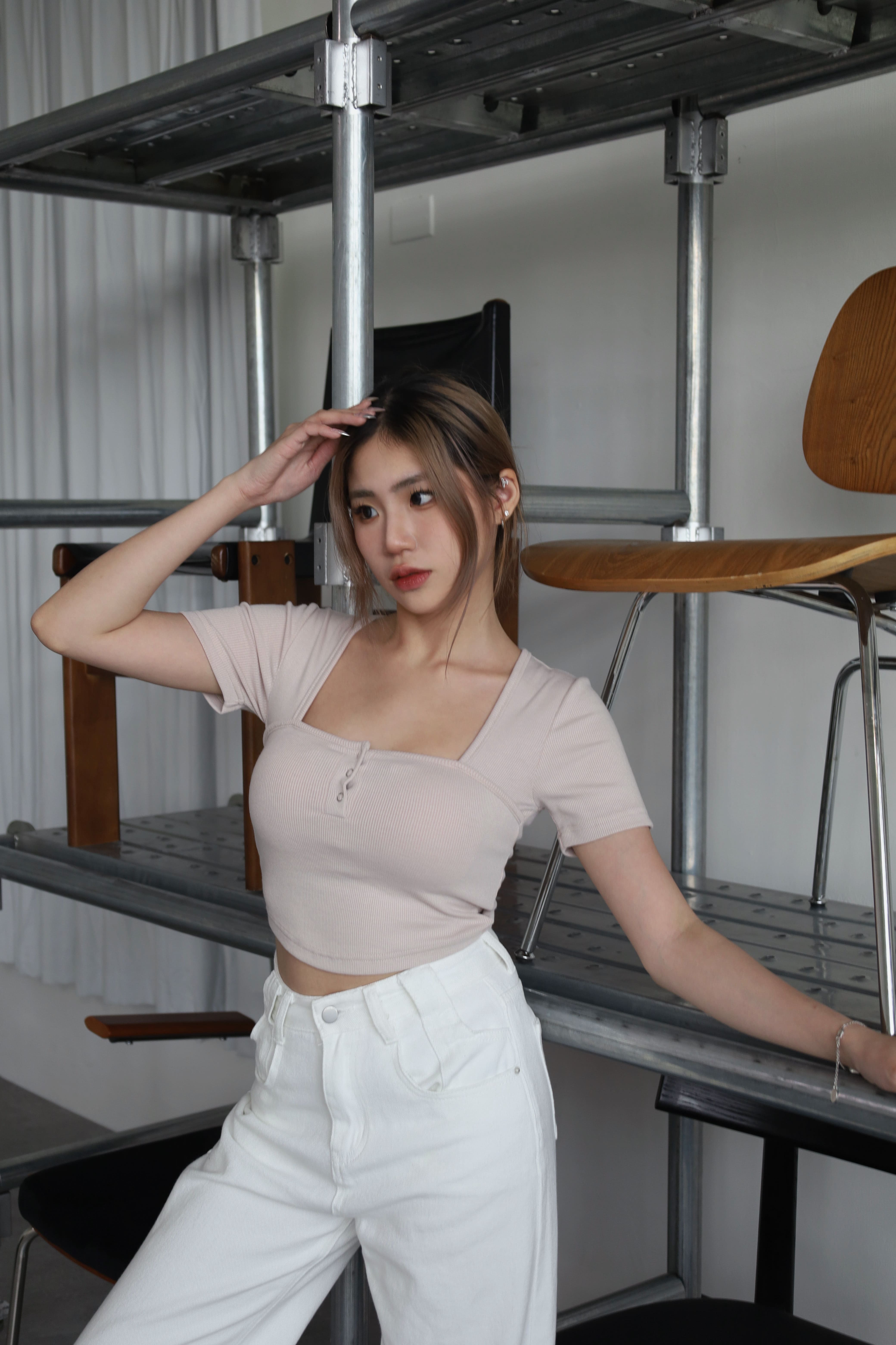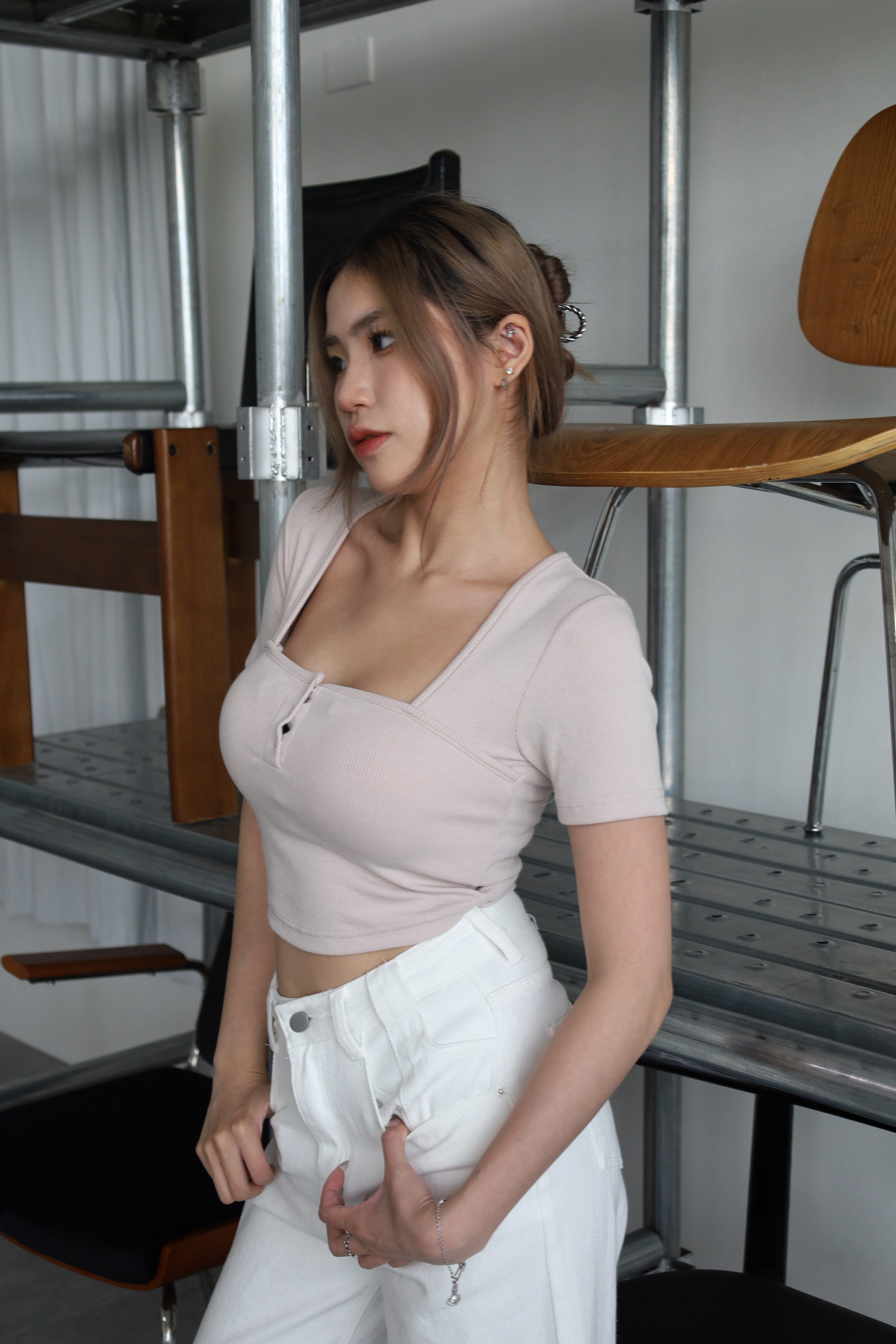 胸前排釦也可以打開1、2顆釦 小露性感~