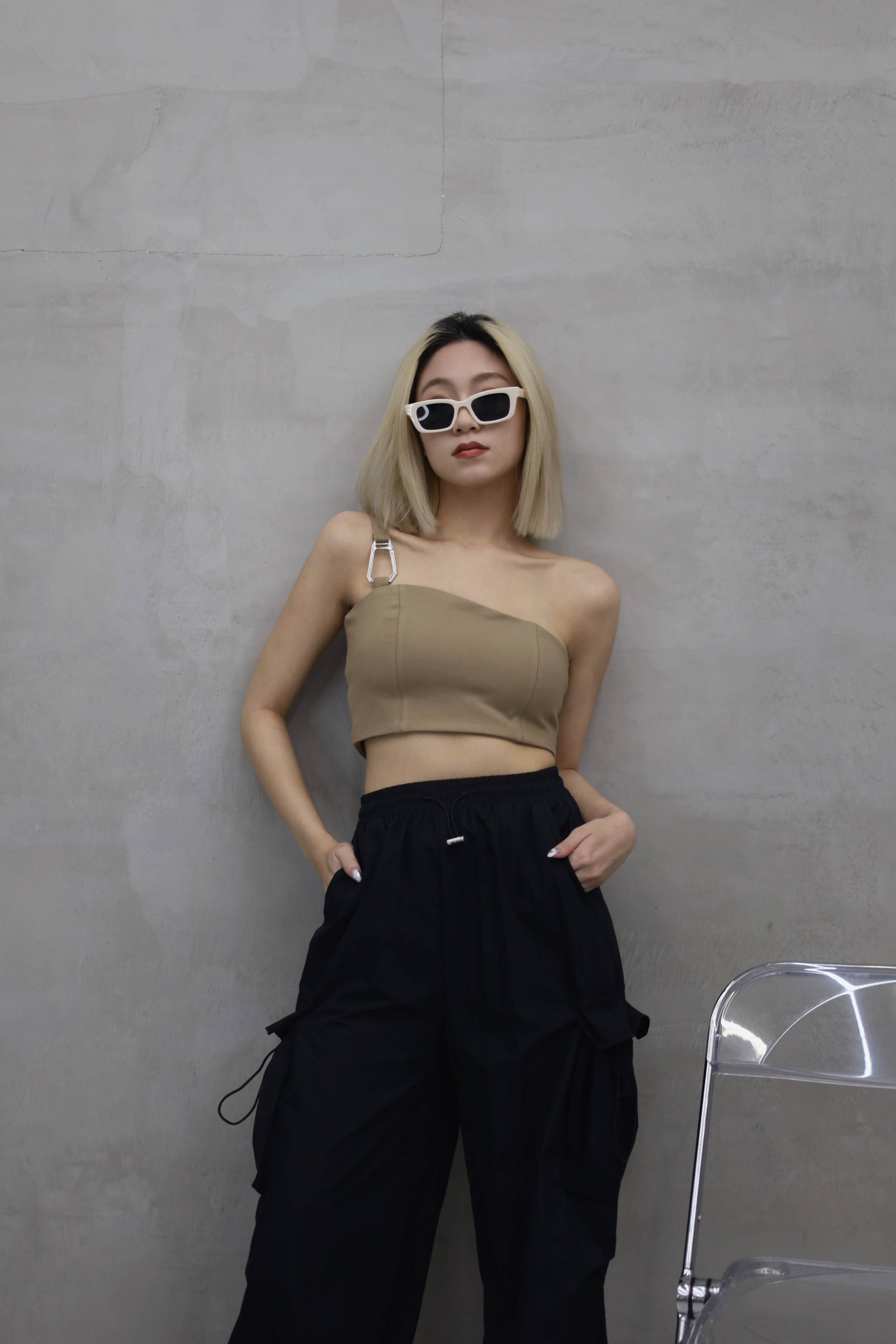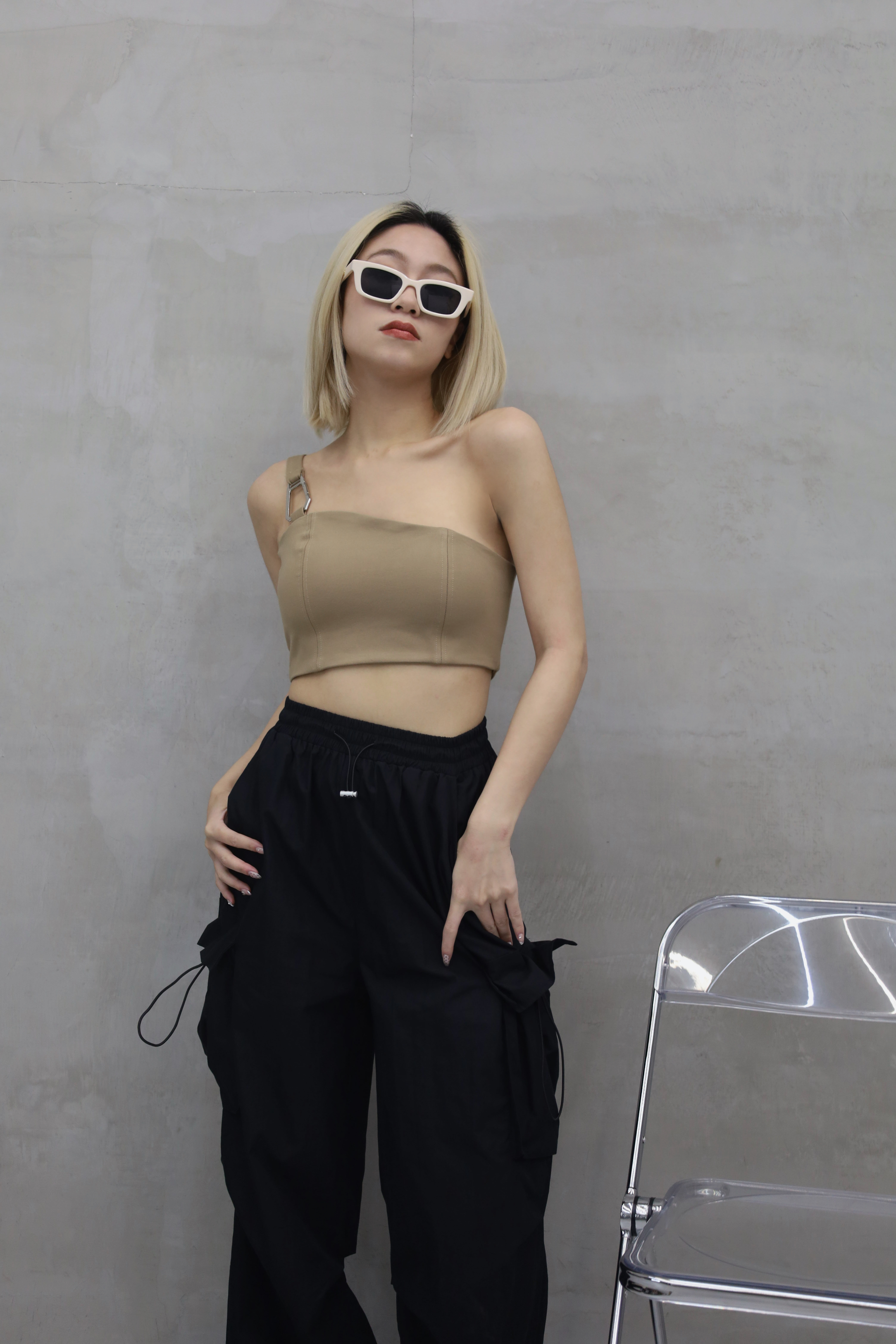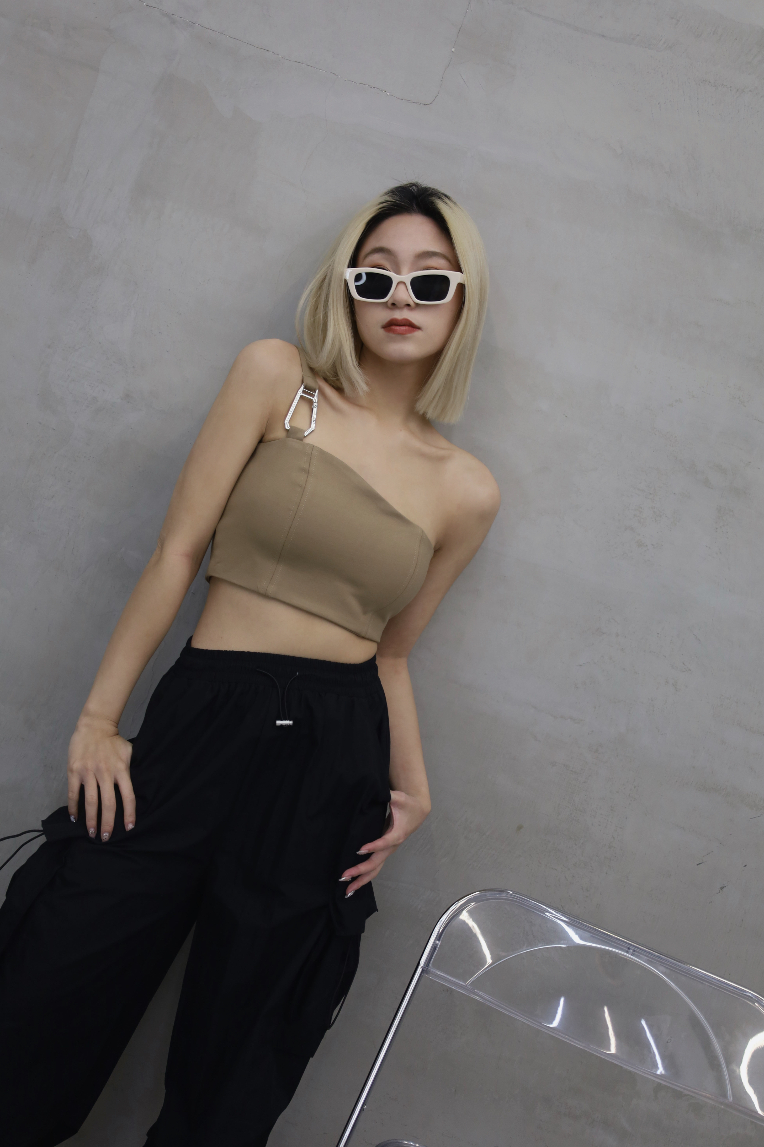 單肩不規則版型搭配質感金屬飾釦超加分!