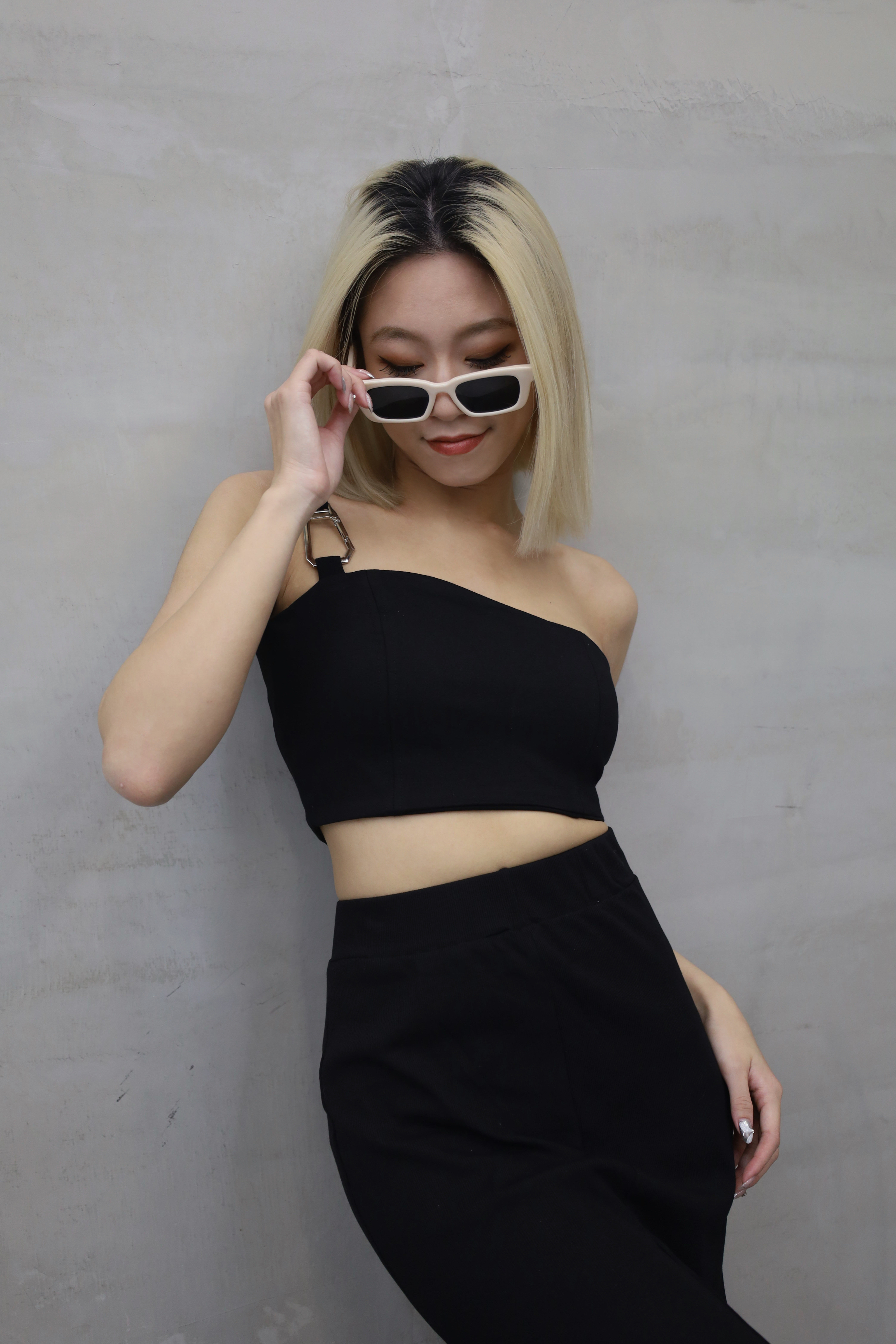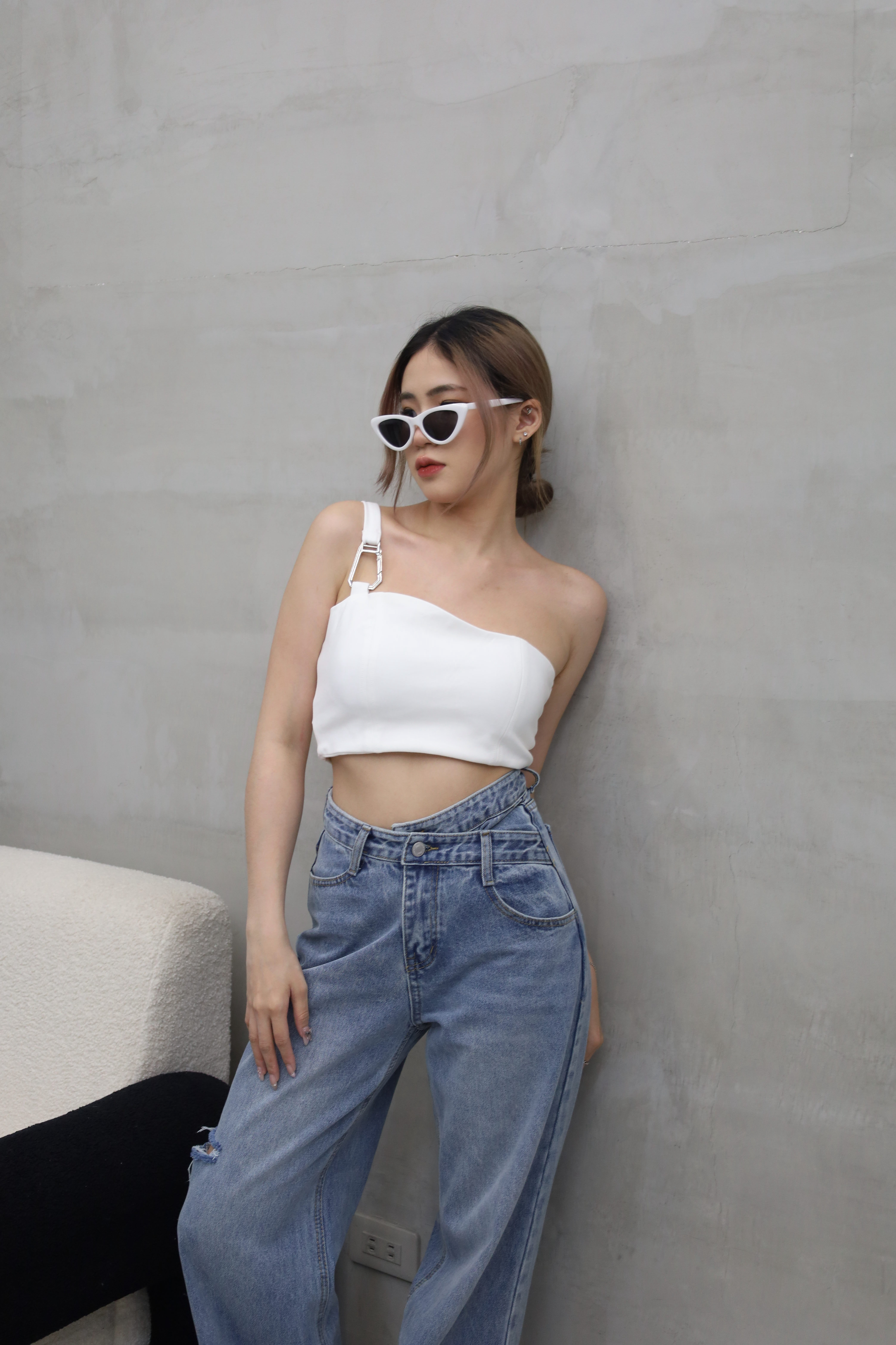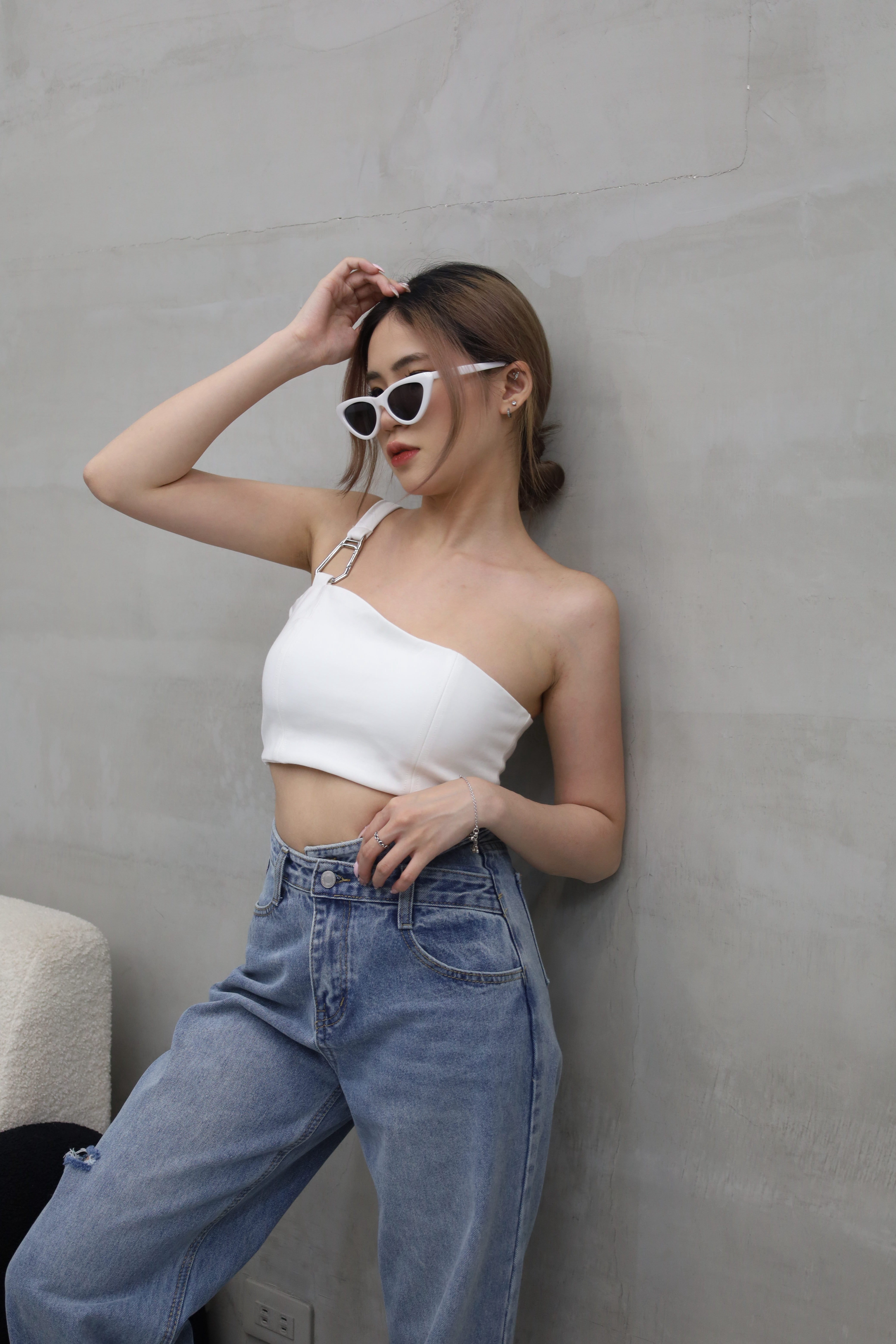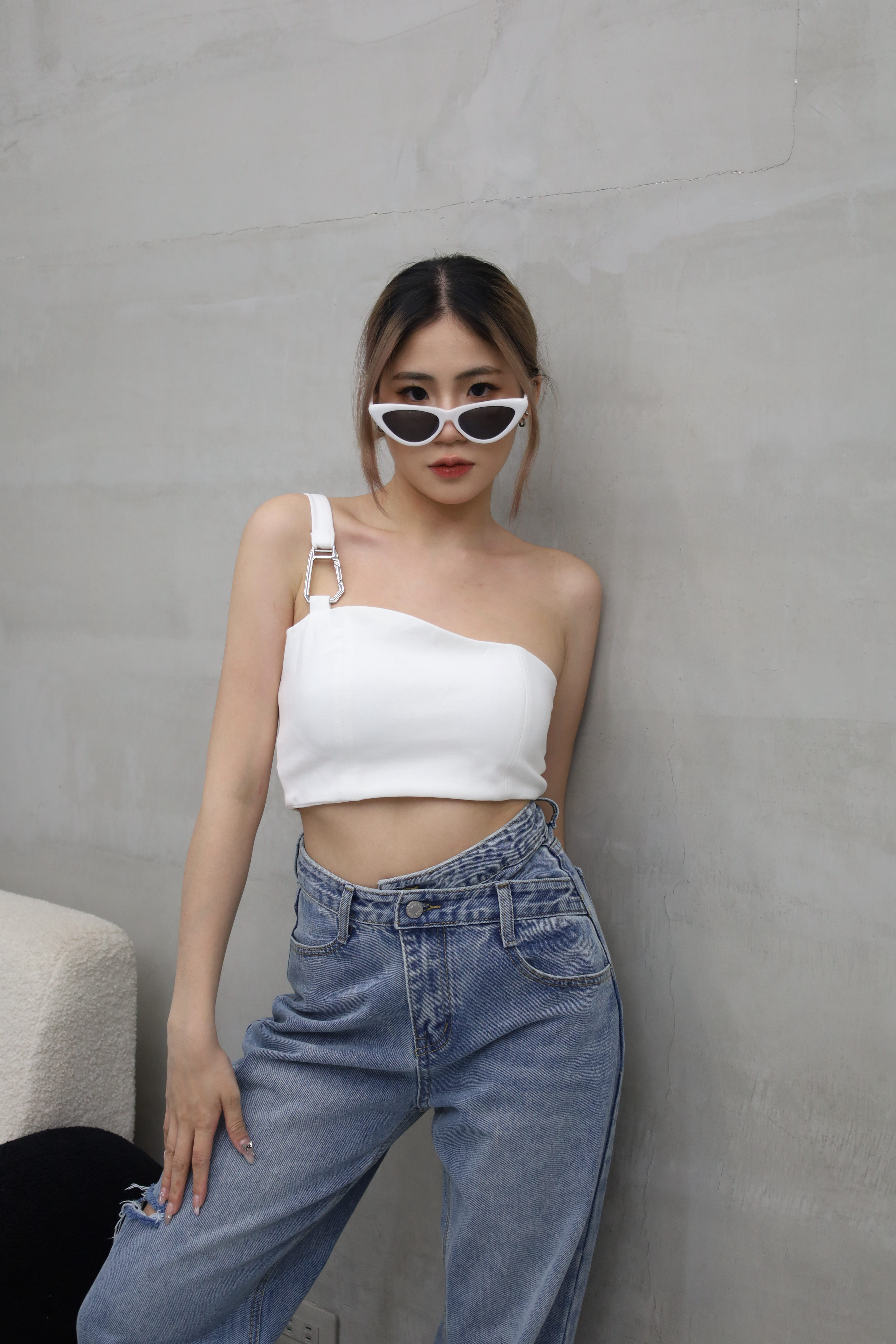 單肩不規則版型搭配質感金屬飾釦超加分!