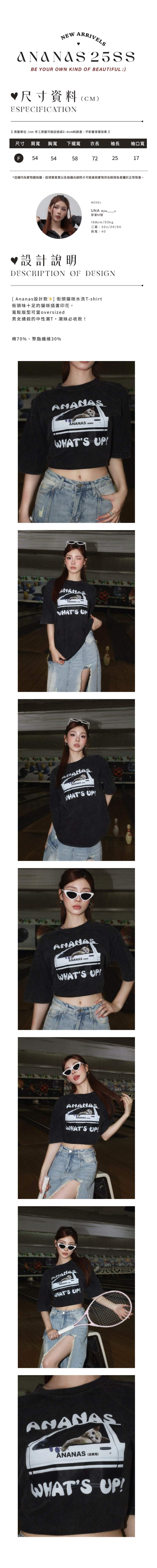 [ Ananas設計款✨] 街頭貓咪水洗T-shirt