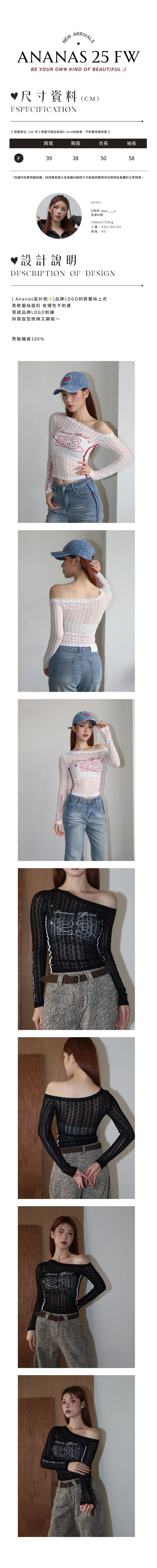[ Ananas設計款✨]品牌LOGO斜肩蕾絲上衣