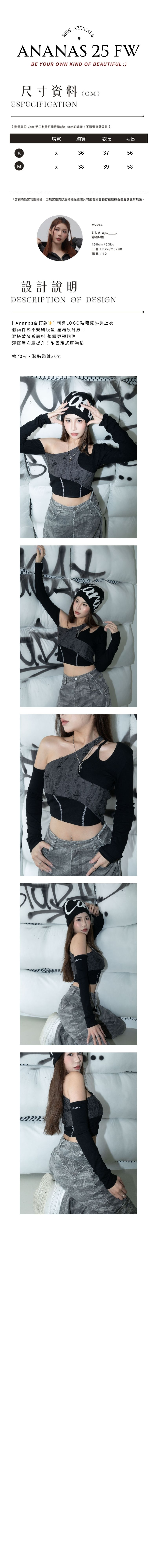 [ Ananas自訂款] 刺繡LOGO破壞感斜肩上衣