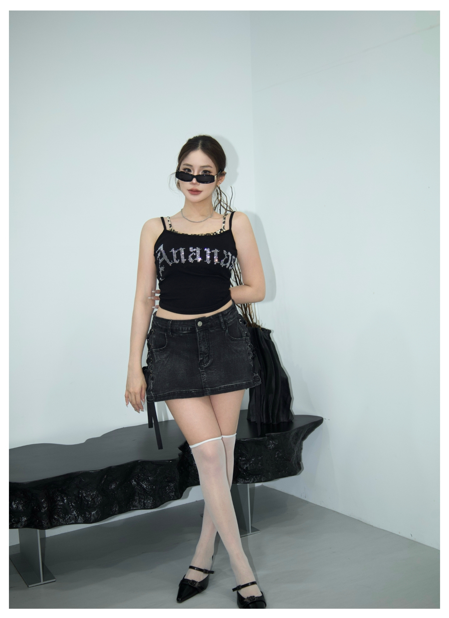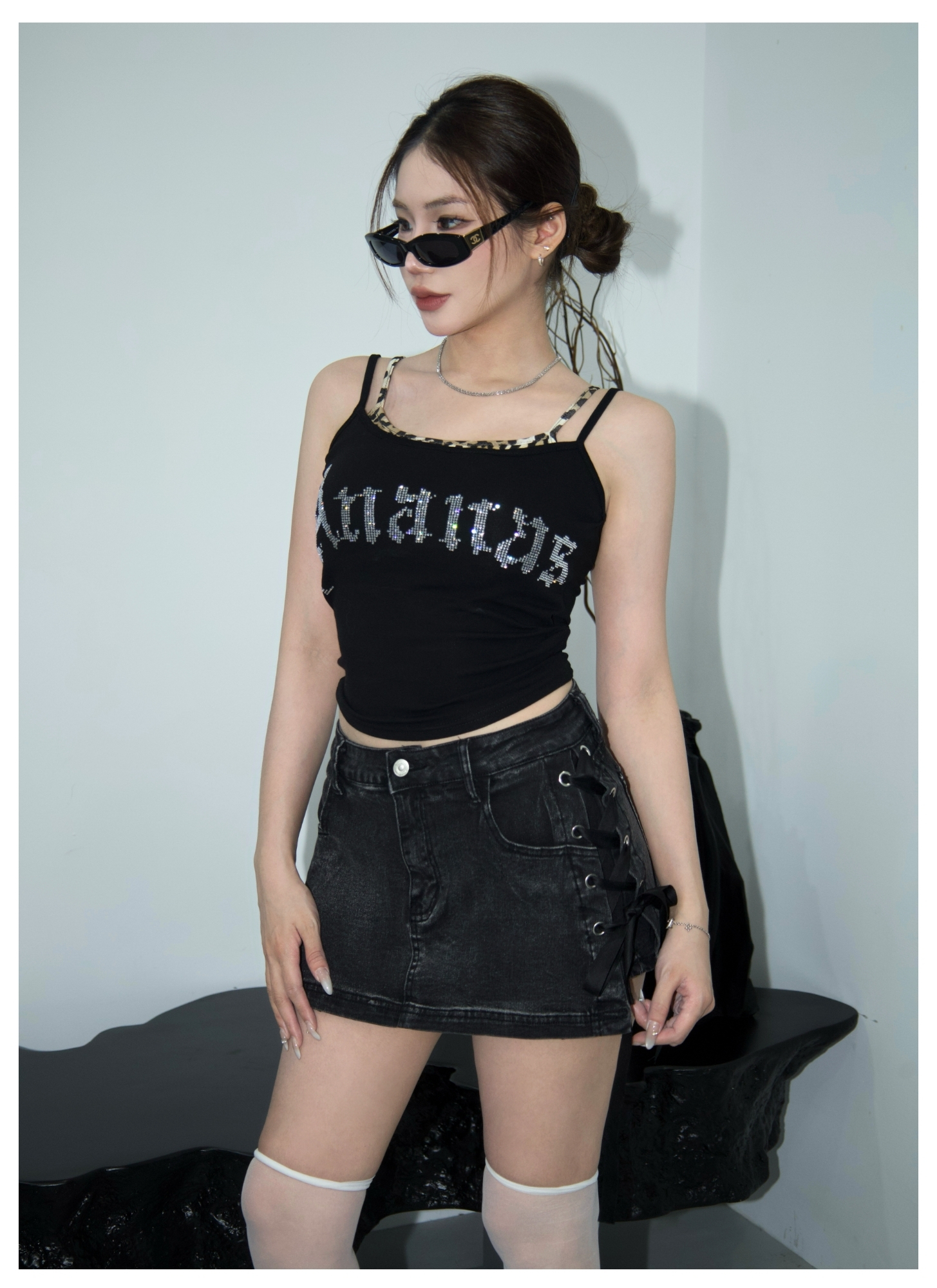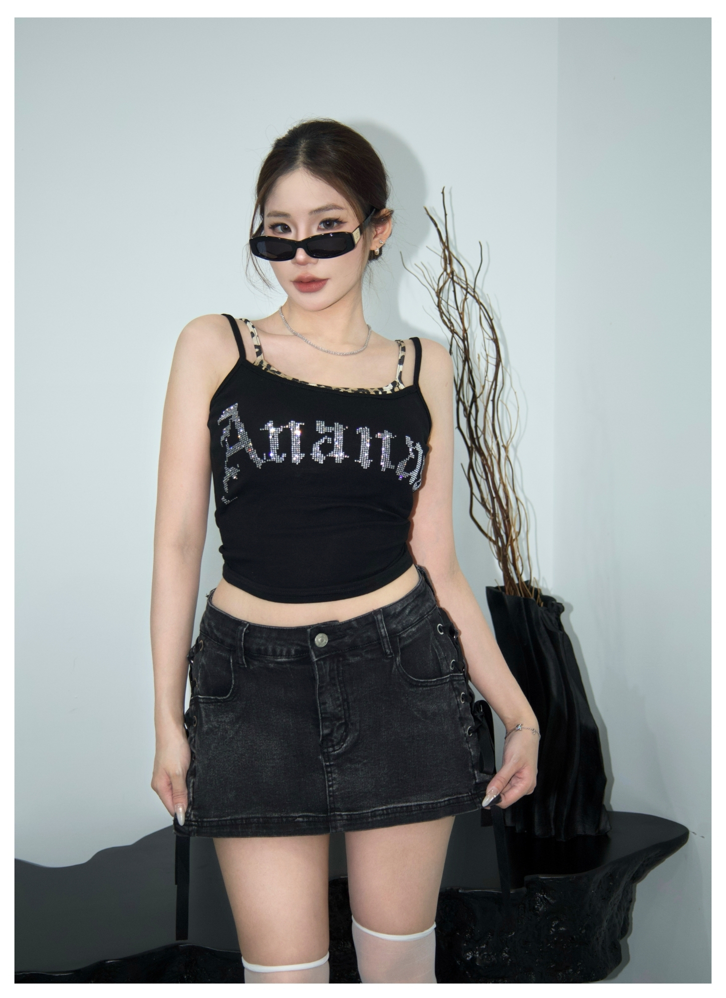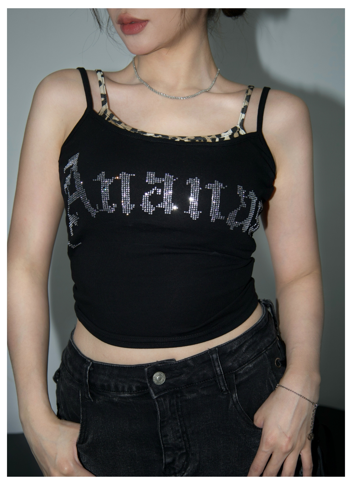 [ Ananas自訂款✨ ] 品牌LOGO燙鑽假兩件背心