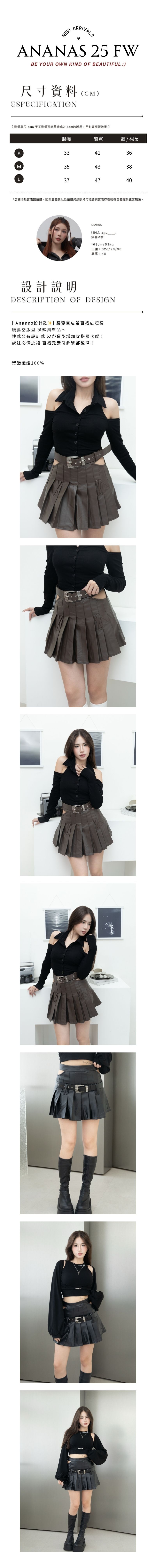 [ Ananas設計款✨] 腰簍空皮帶百褶皮短裙