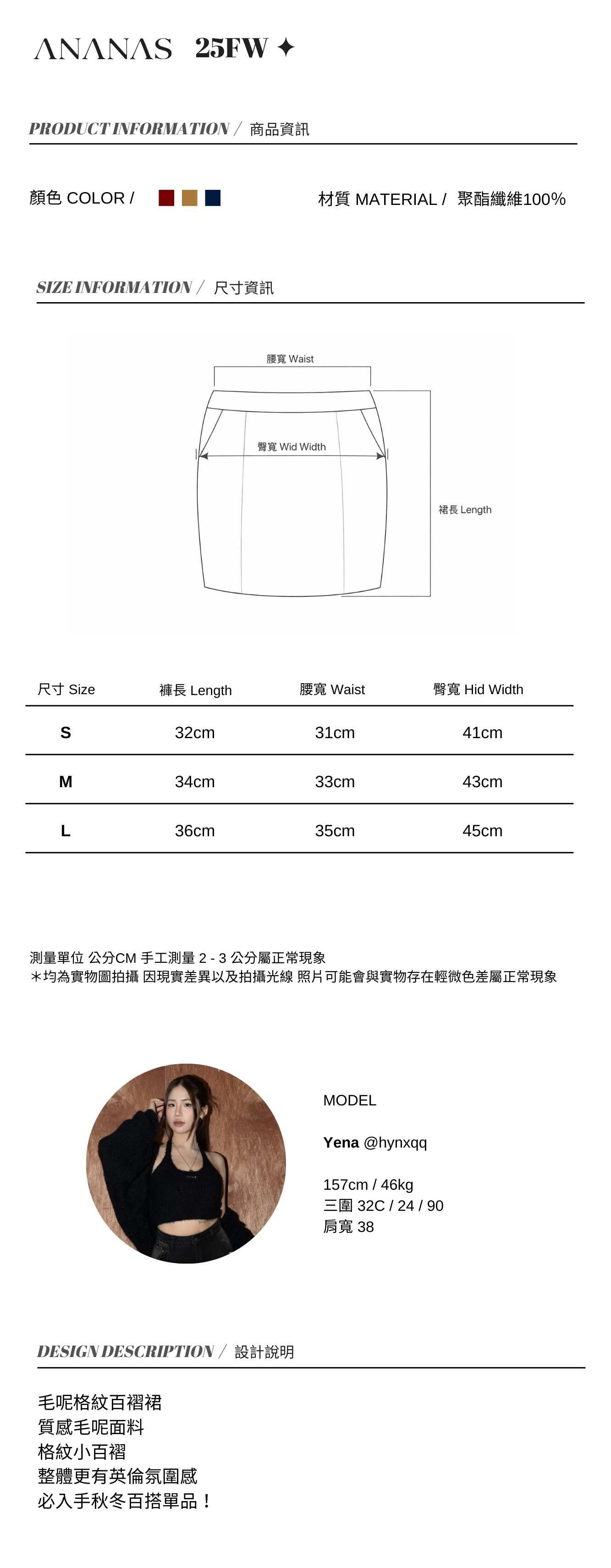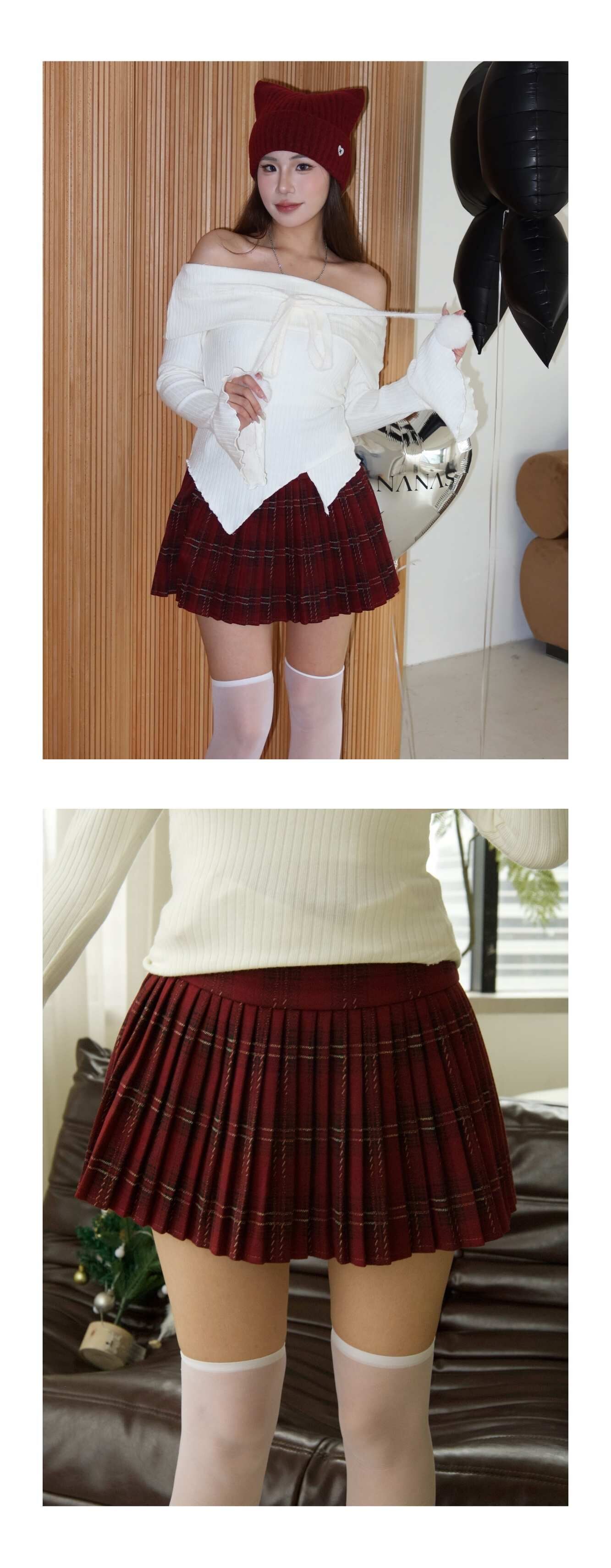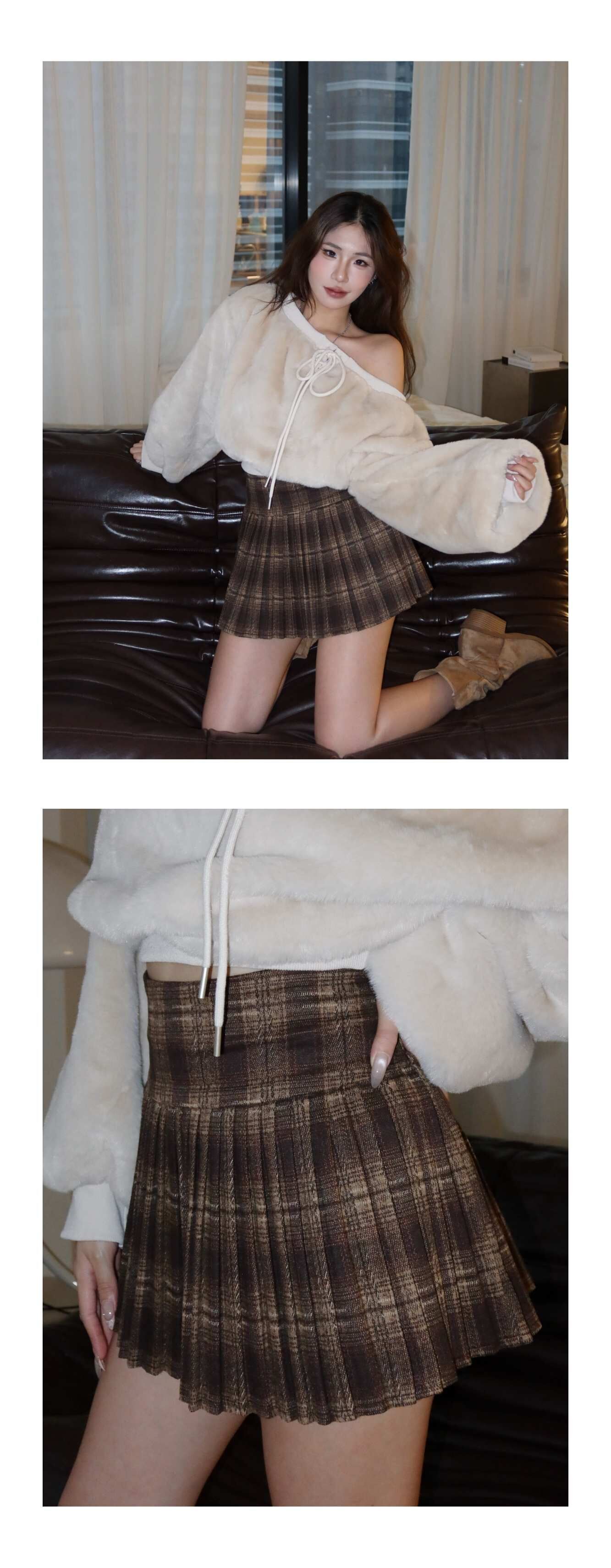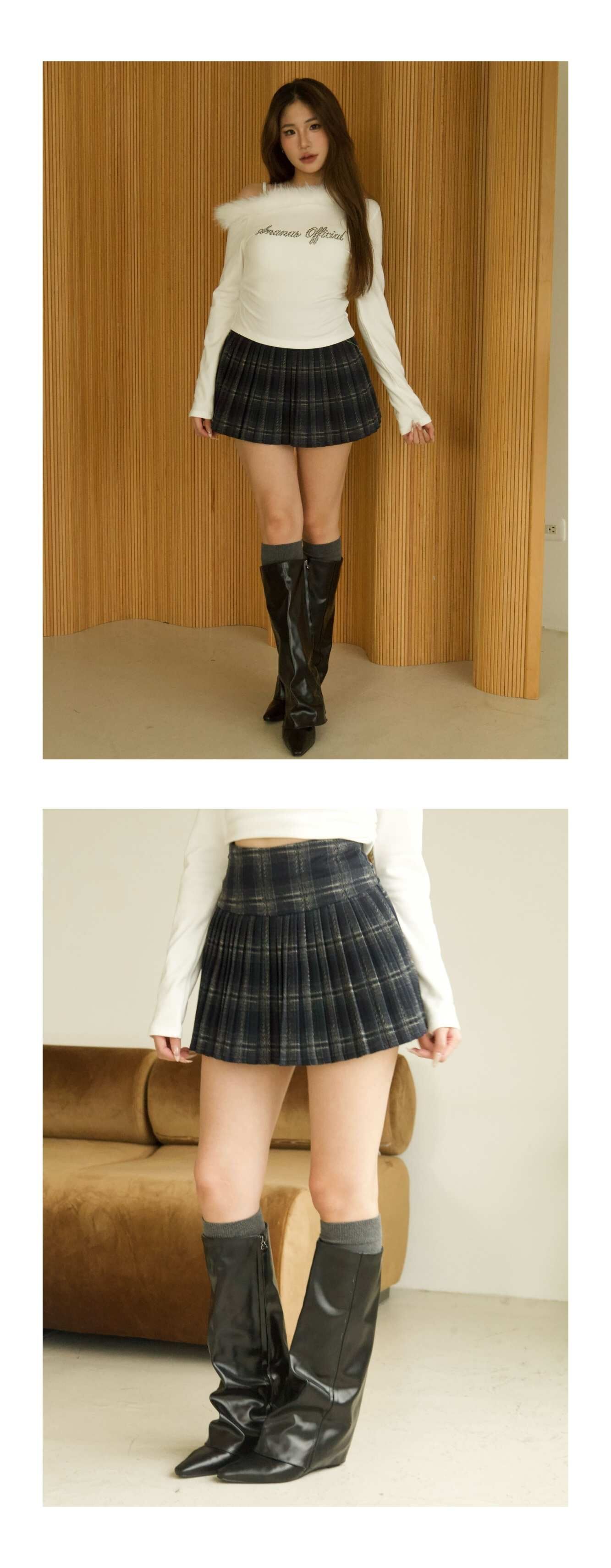 毛呢格紋百褶裙