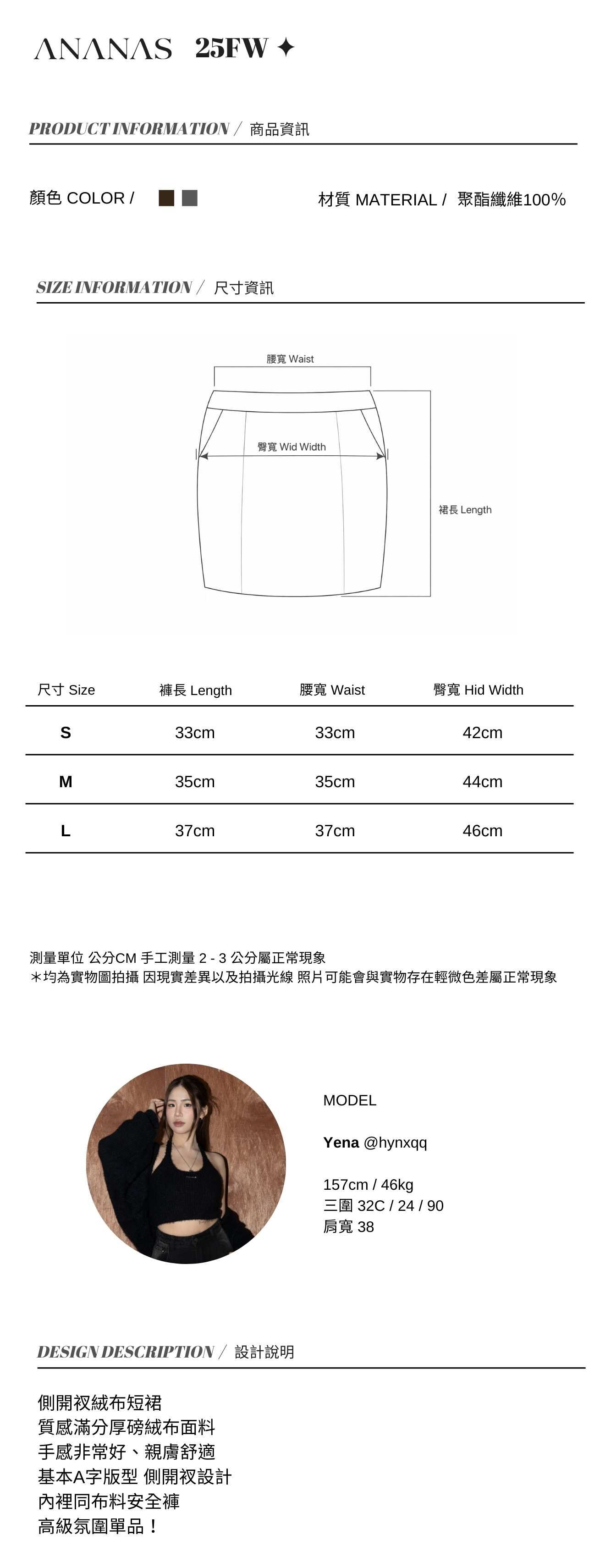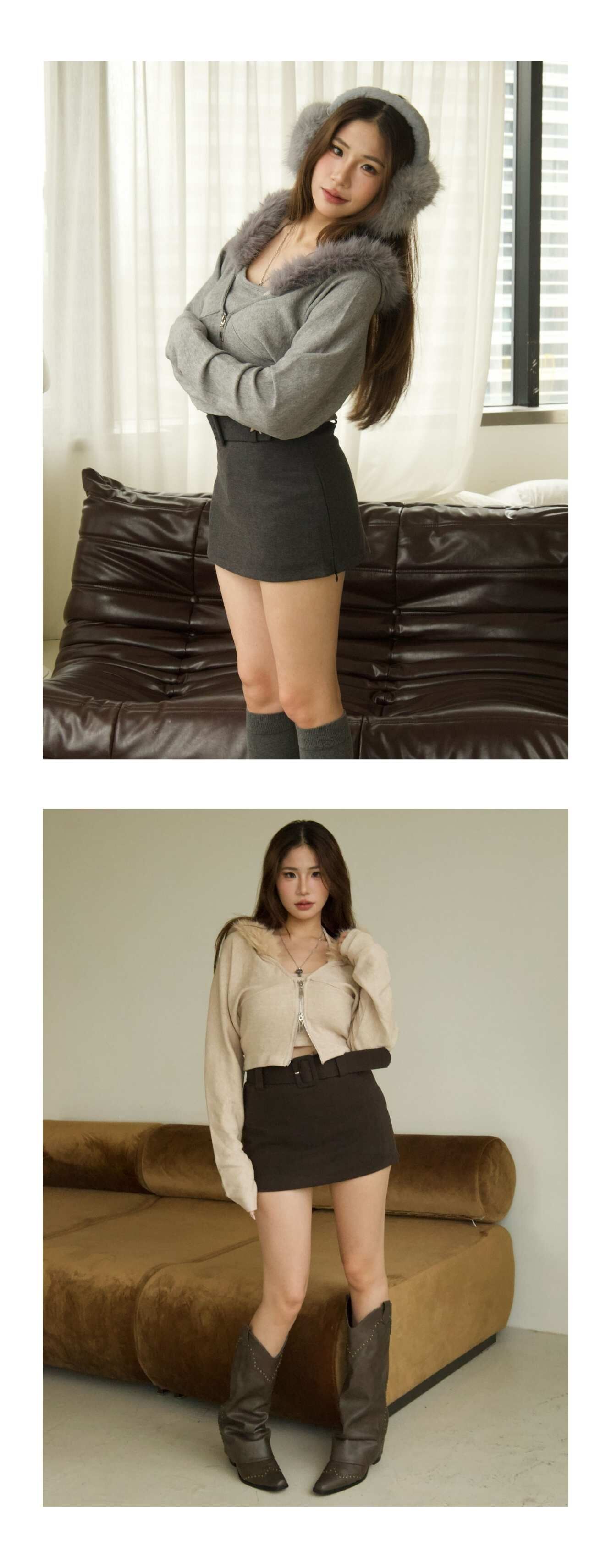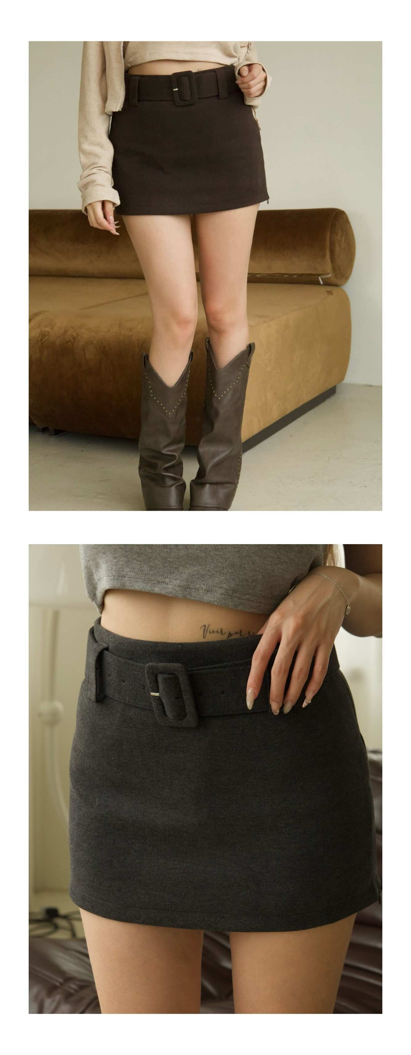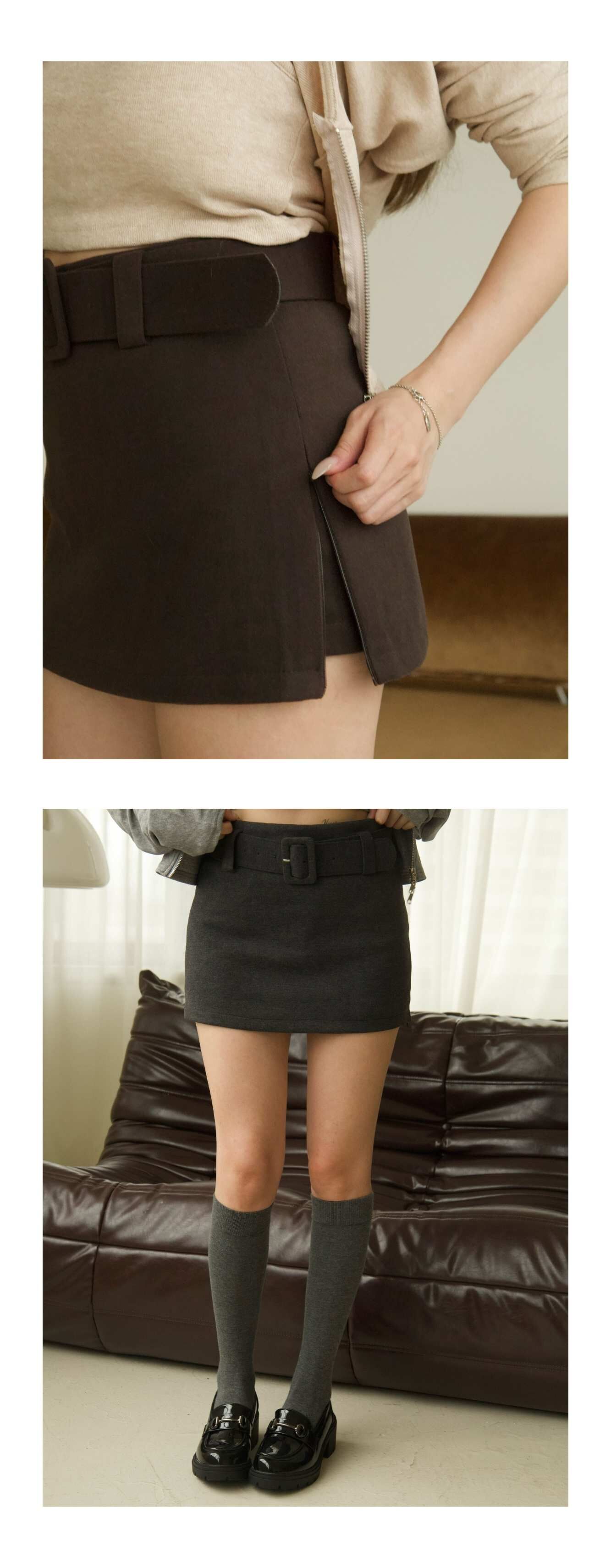 側開衩絨布短裙