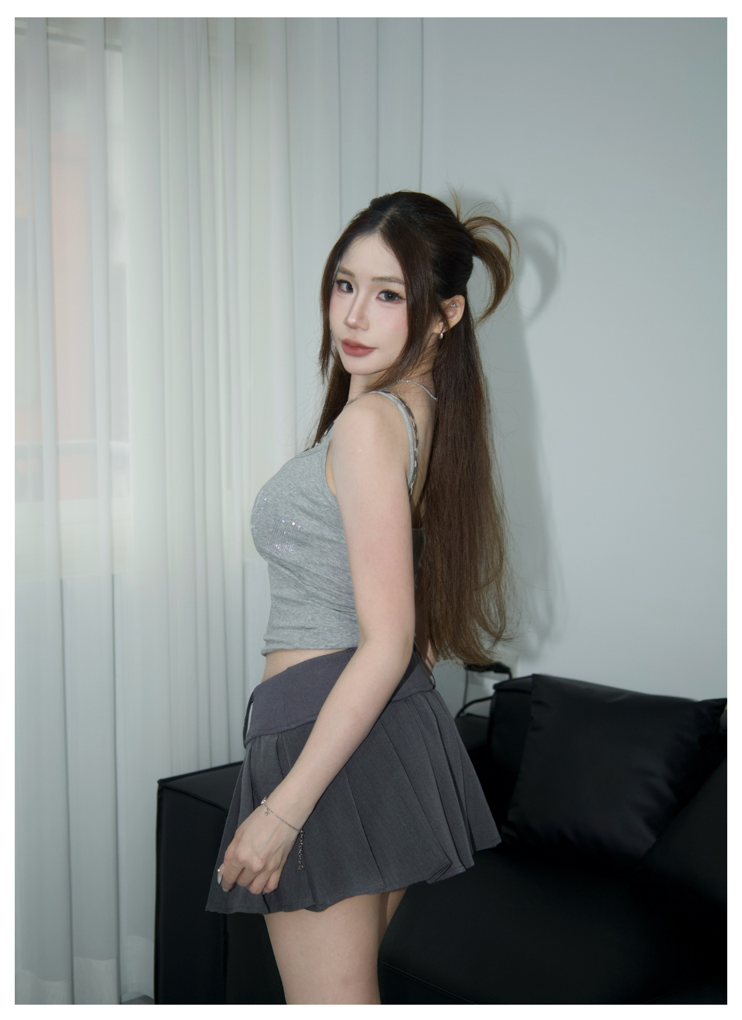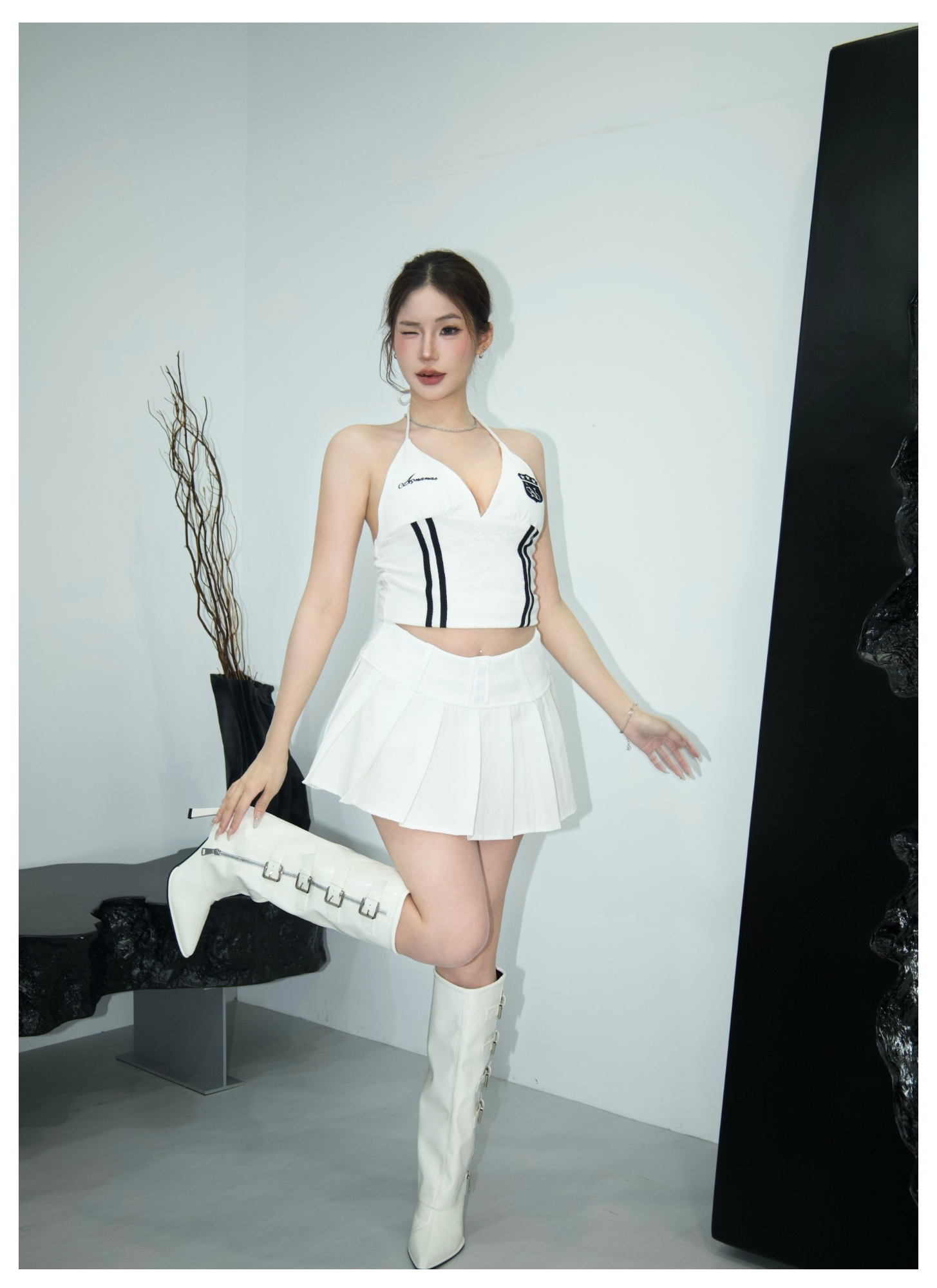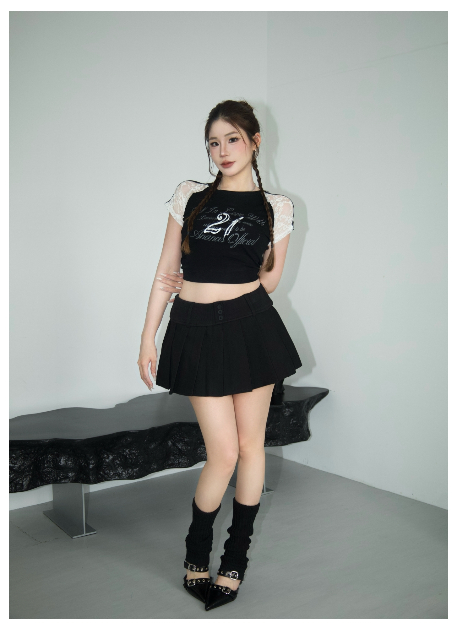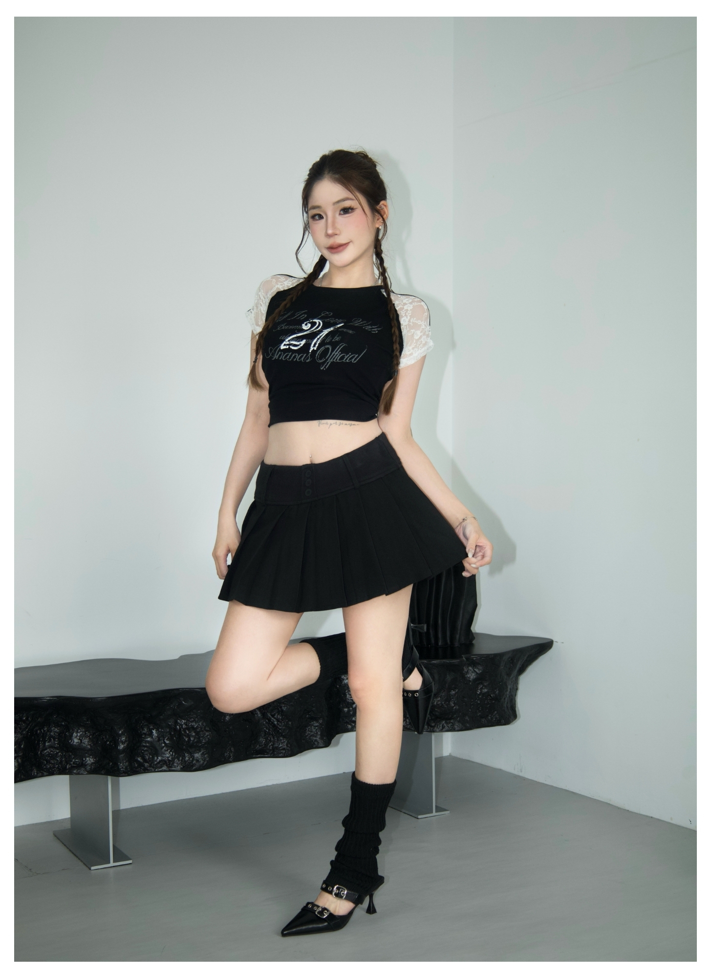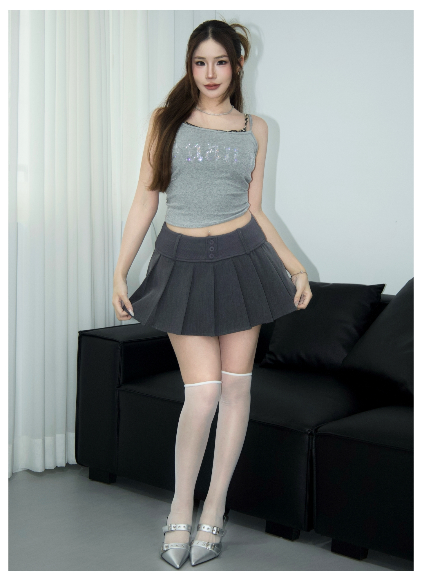 百褶棉短裙