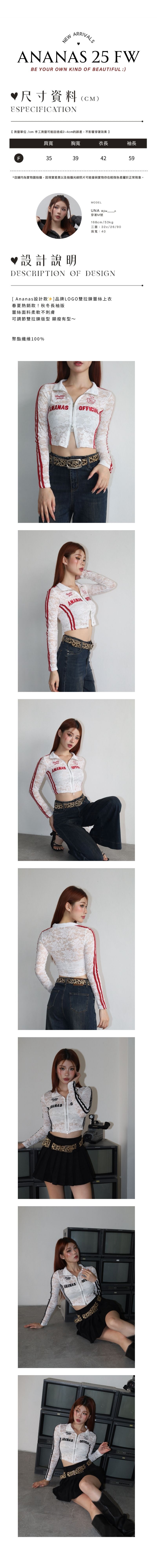 [ Ananas設計款✨]品牌LOGO雙拉鍊蕾絲上衣