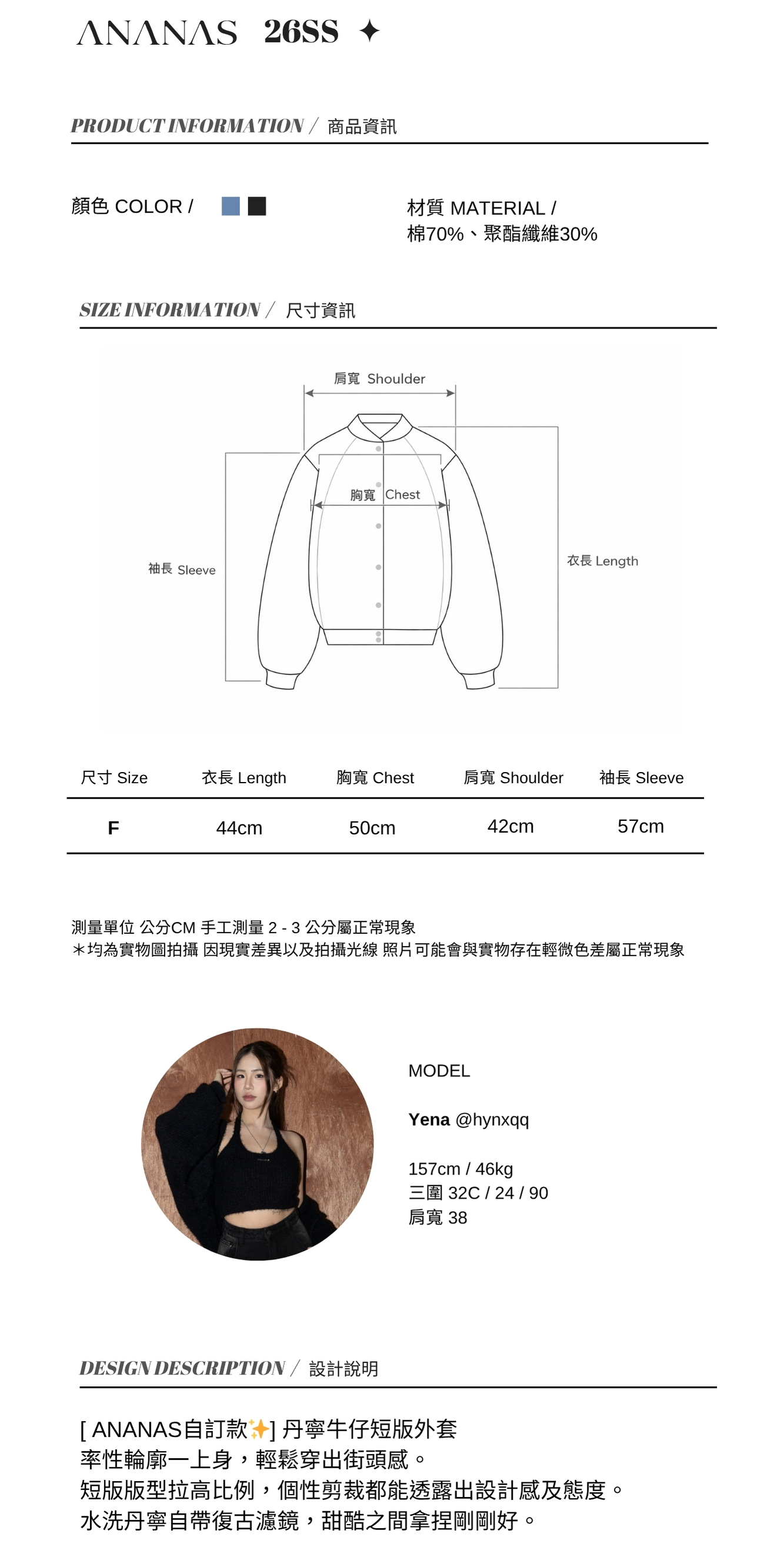 [ Ananas自訂款✨] 丹寧牛仔短版外套