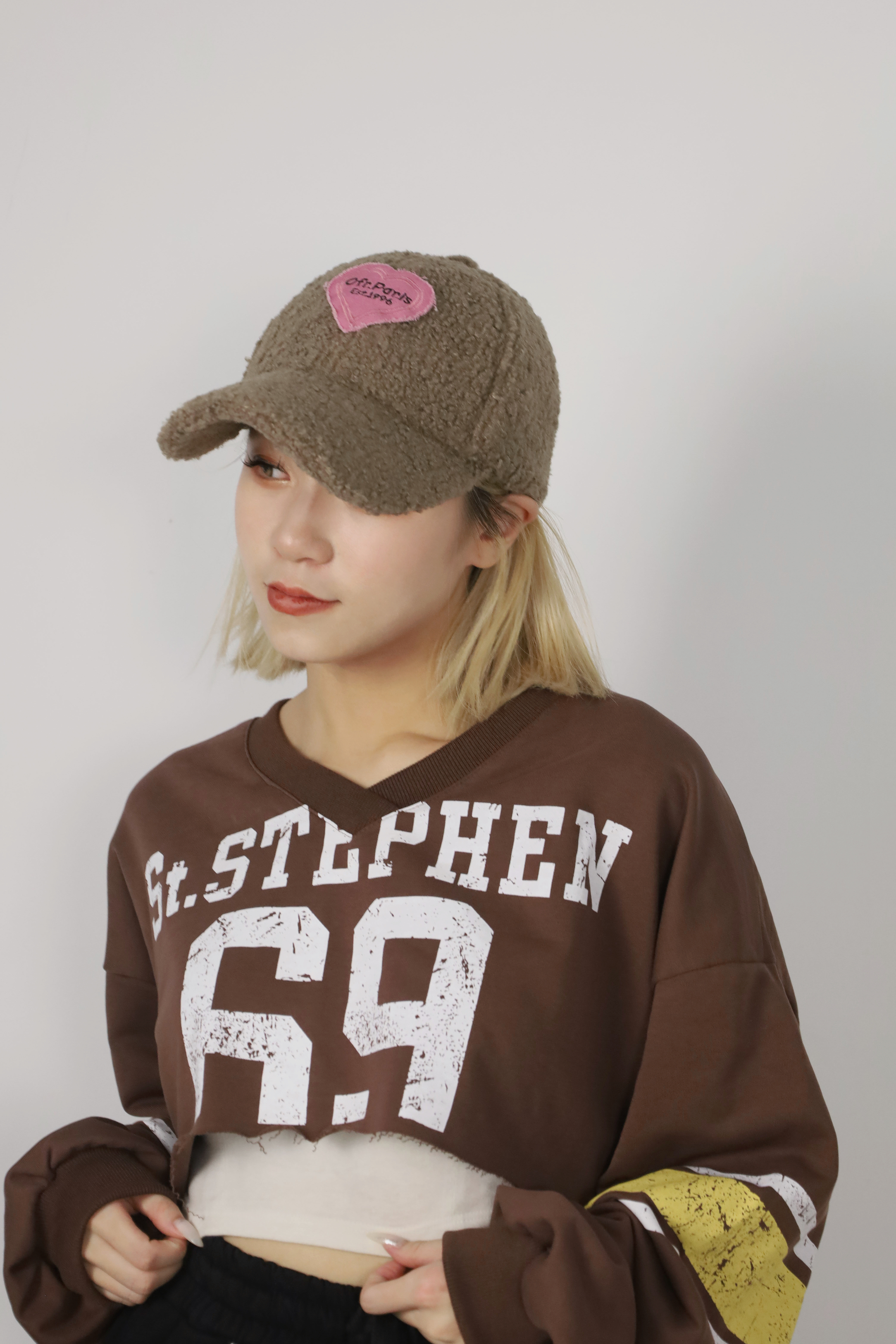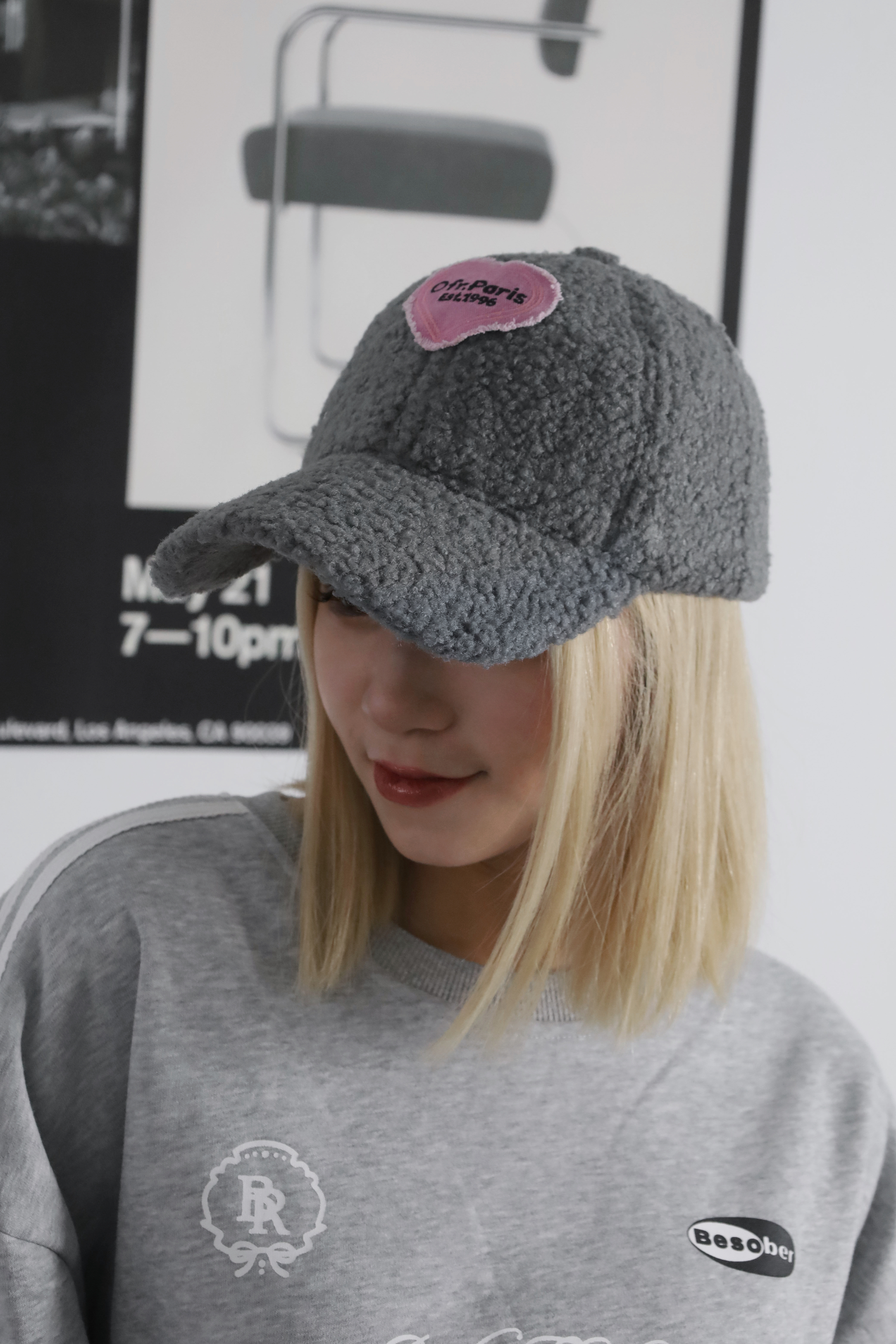 愛心羊羔毛棒球帽