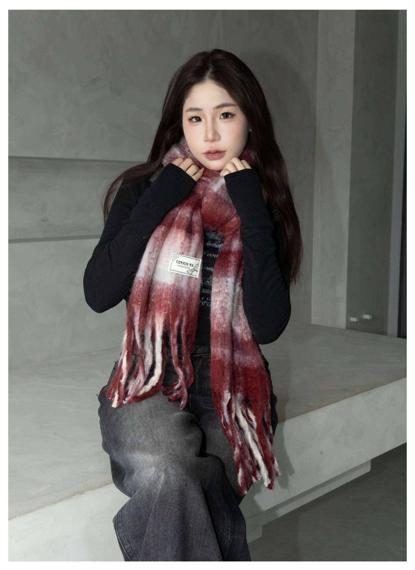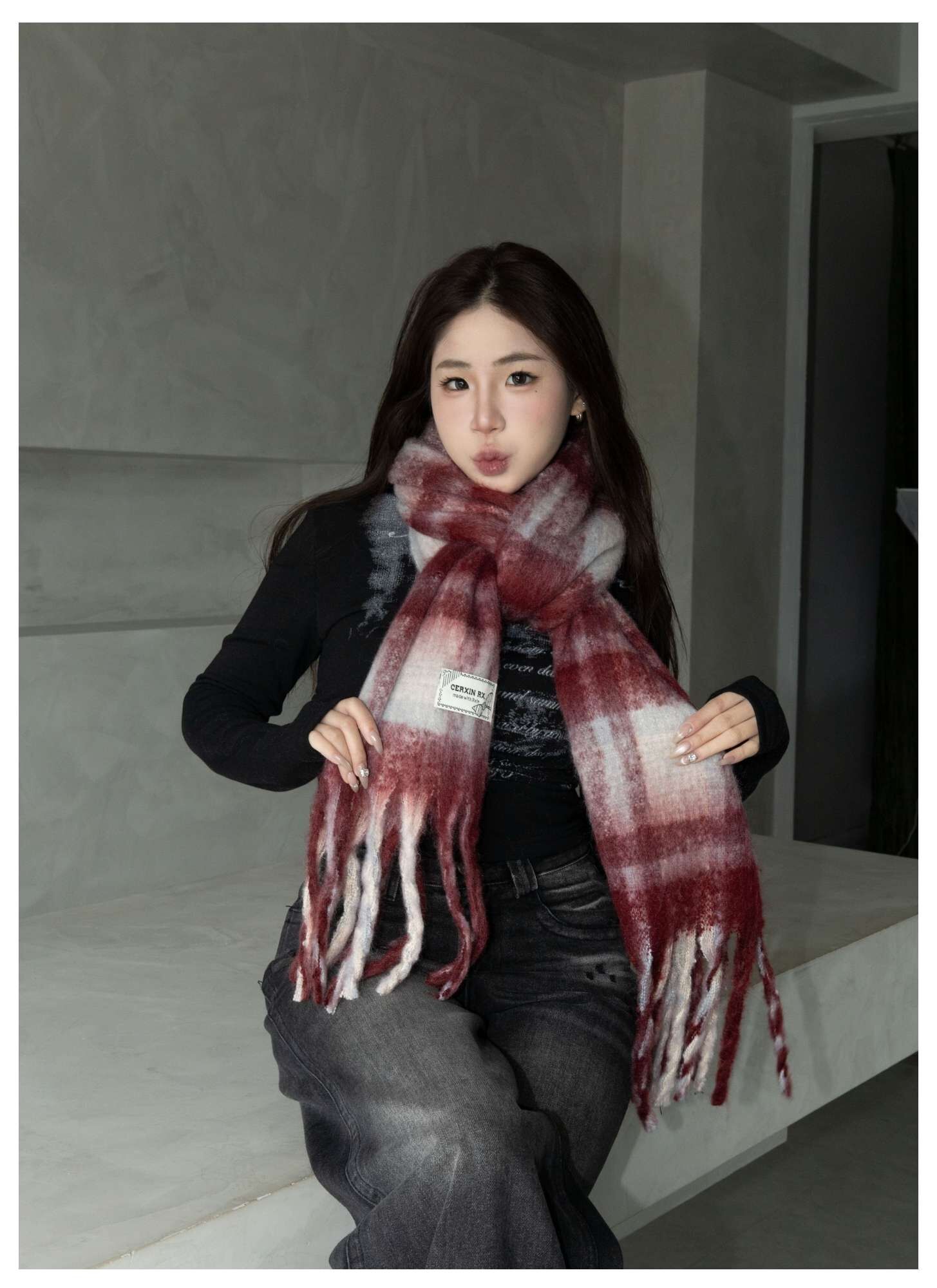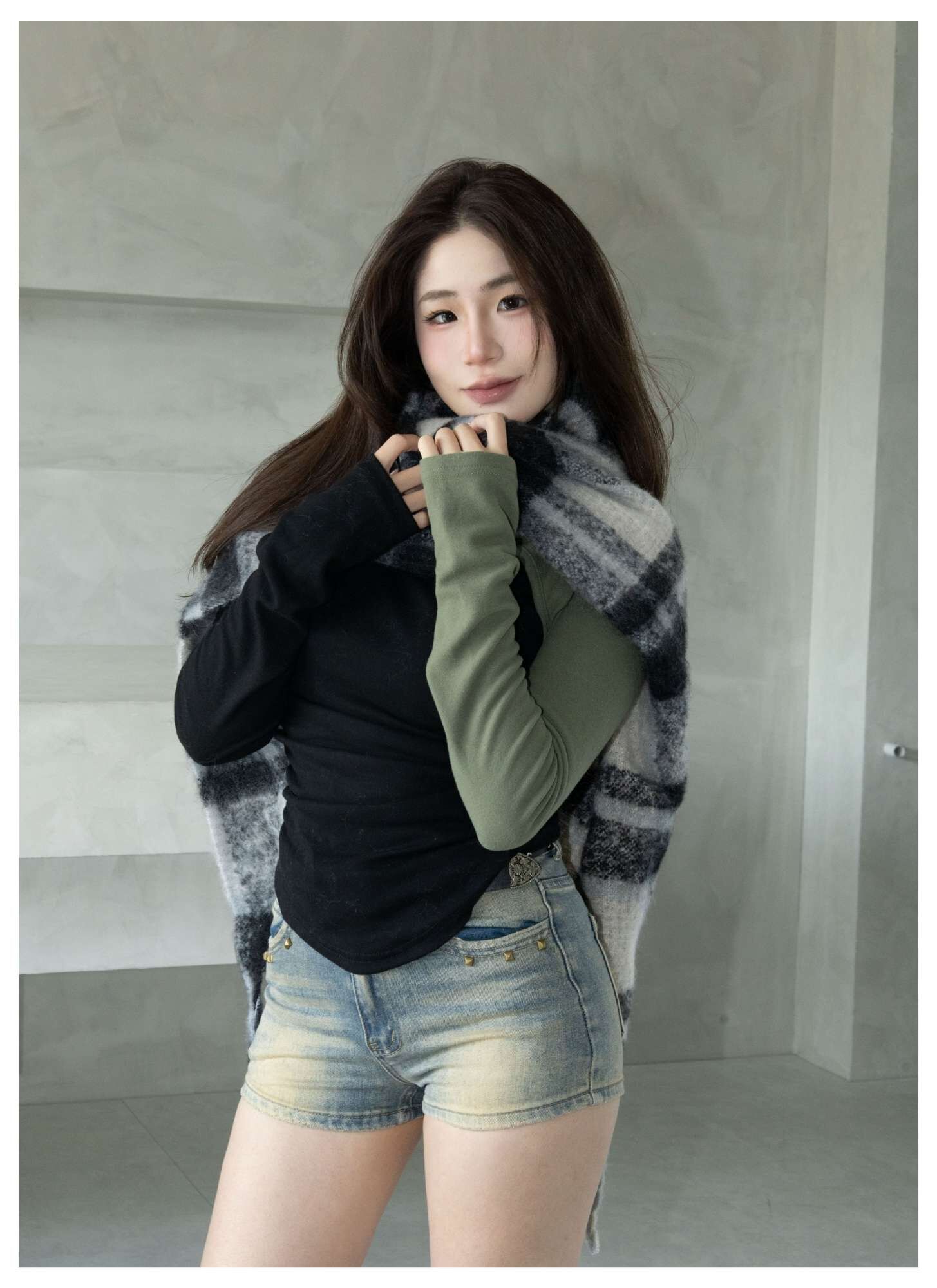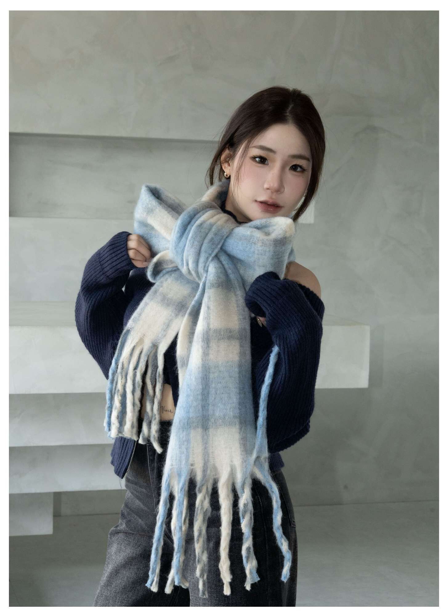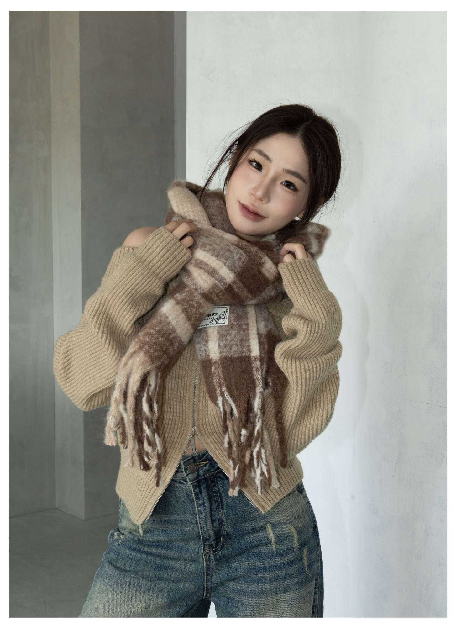 格紋針織圍巾