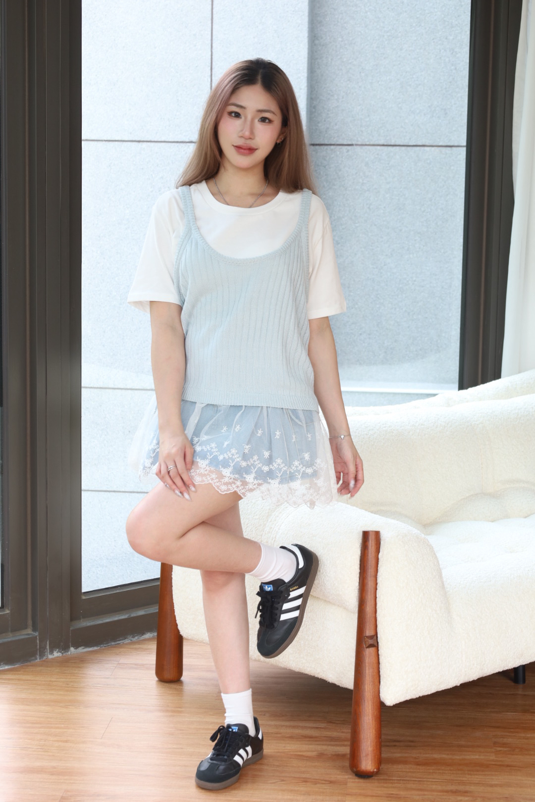 基本白踢混搭蕾絲設計 增添甜美氣息