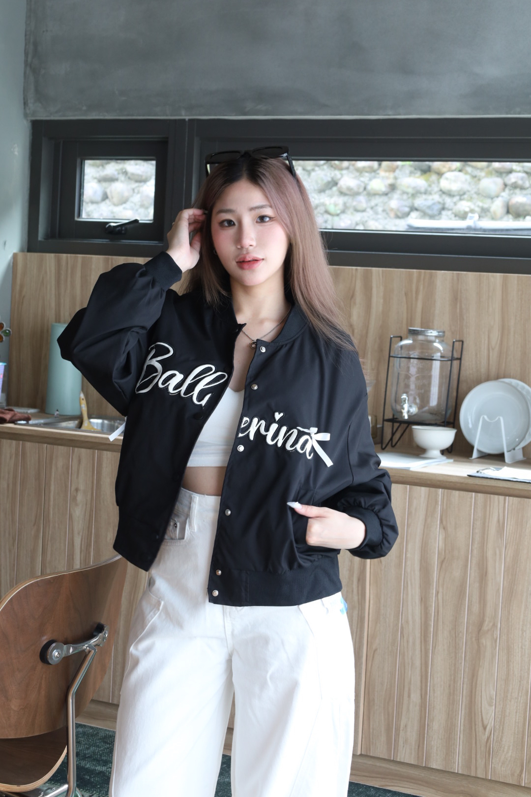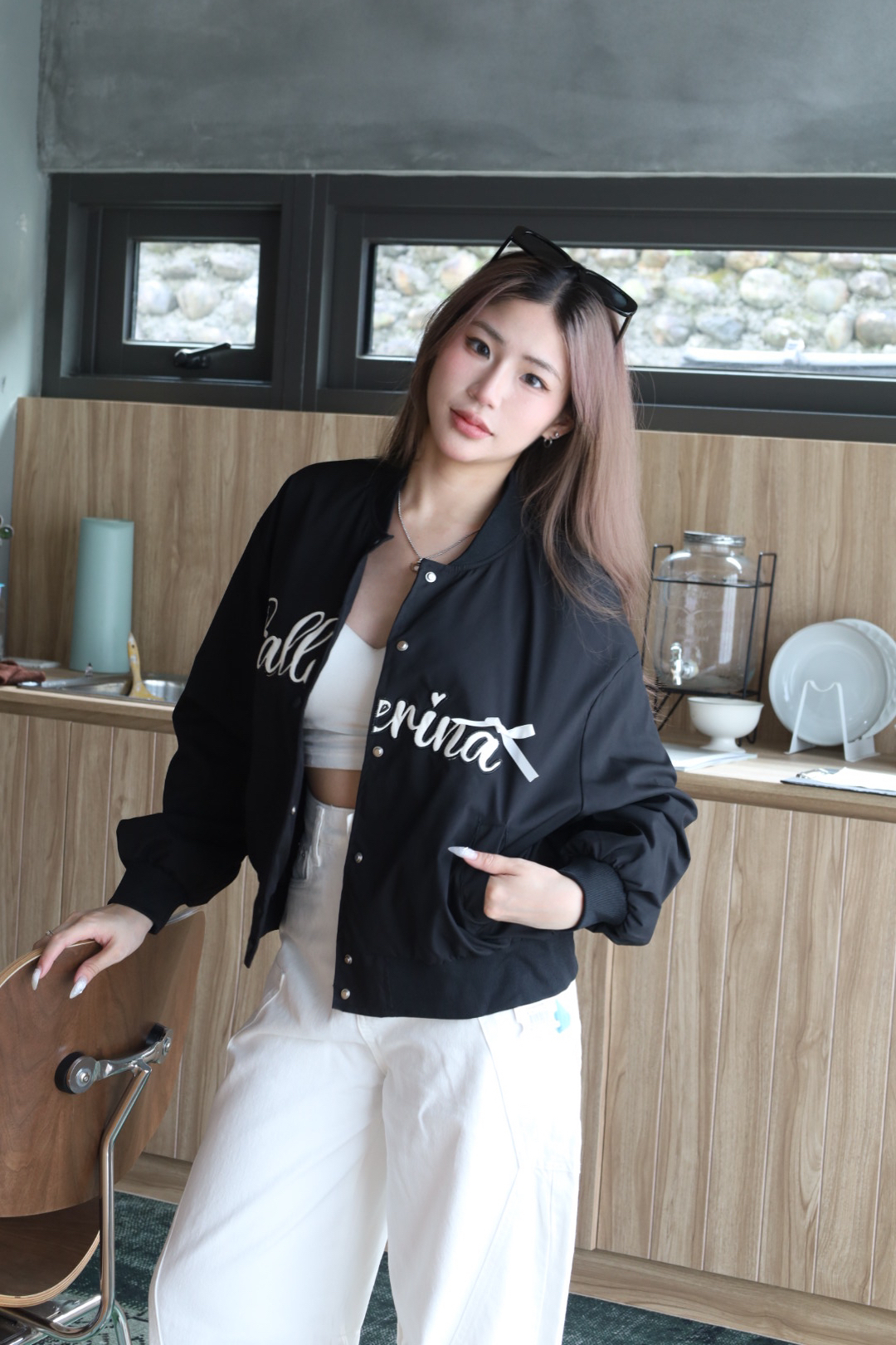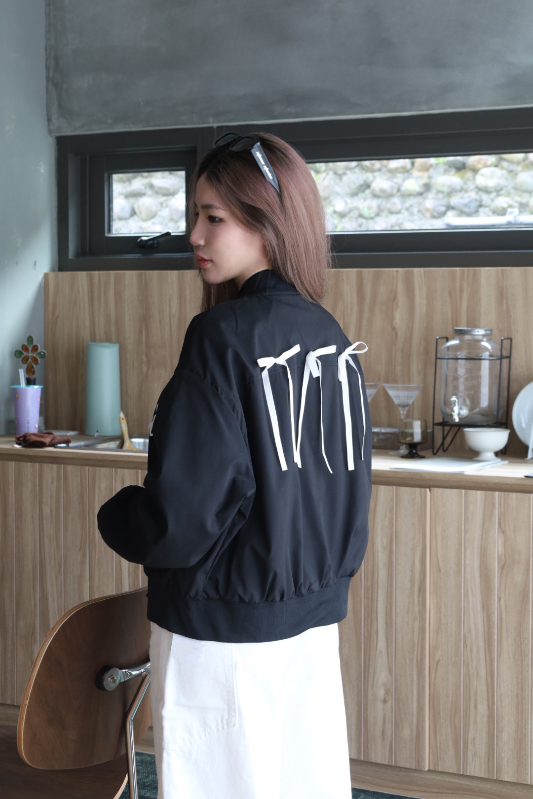 蝴蝶結刺繡飛行外套
