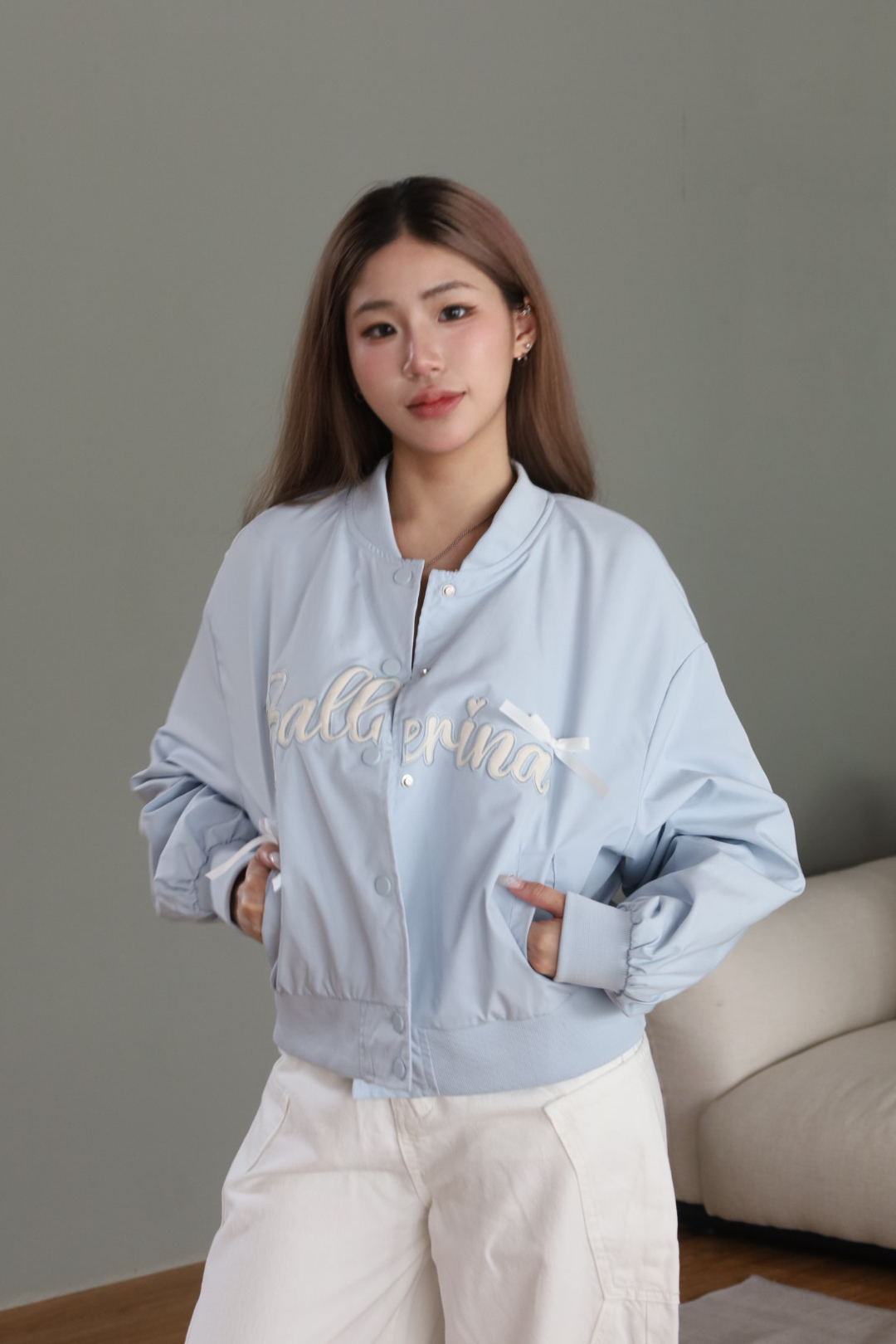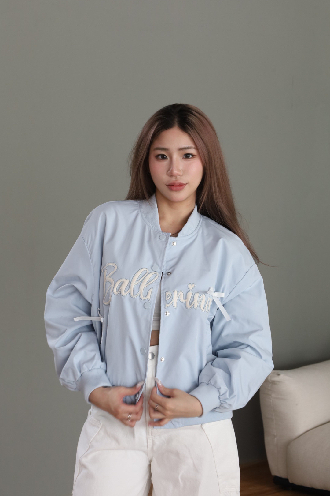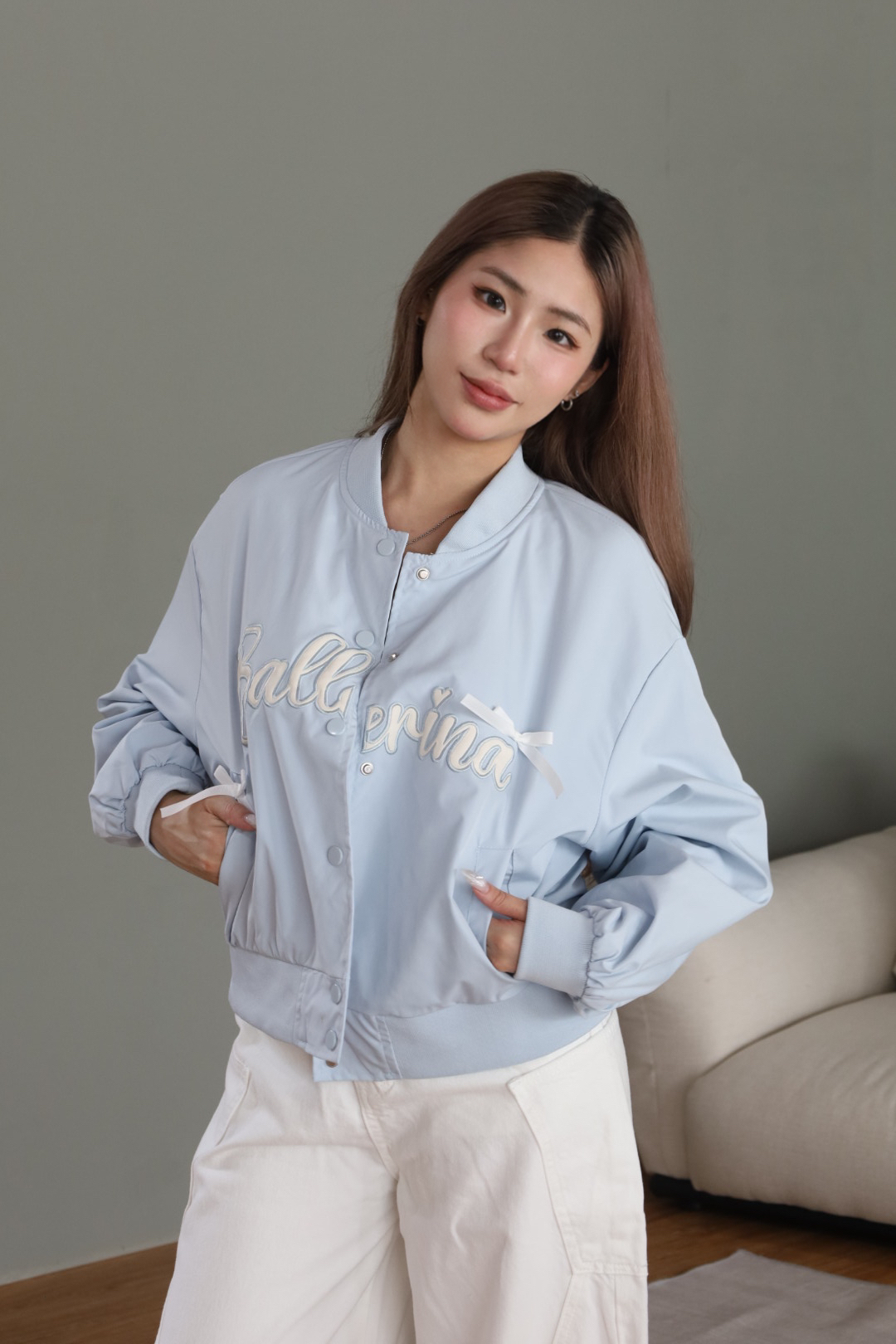 蝴蝶結刺繡飛行外套