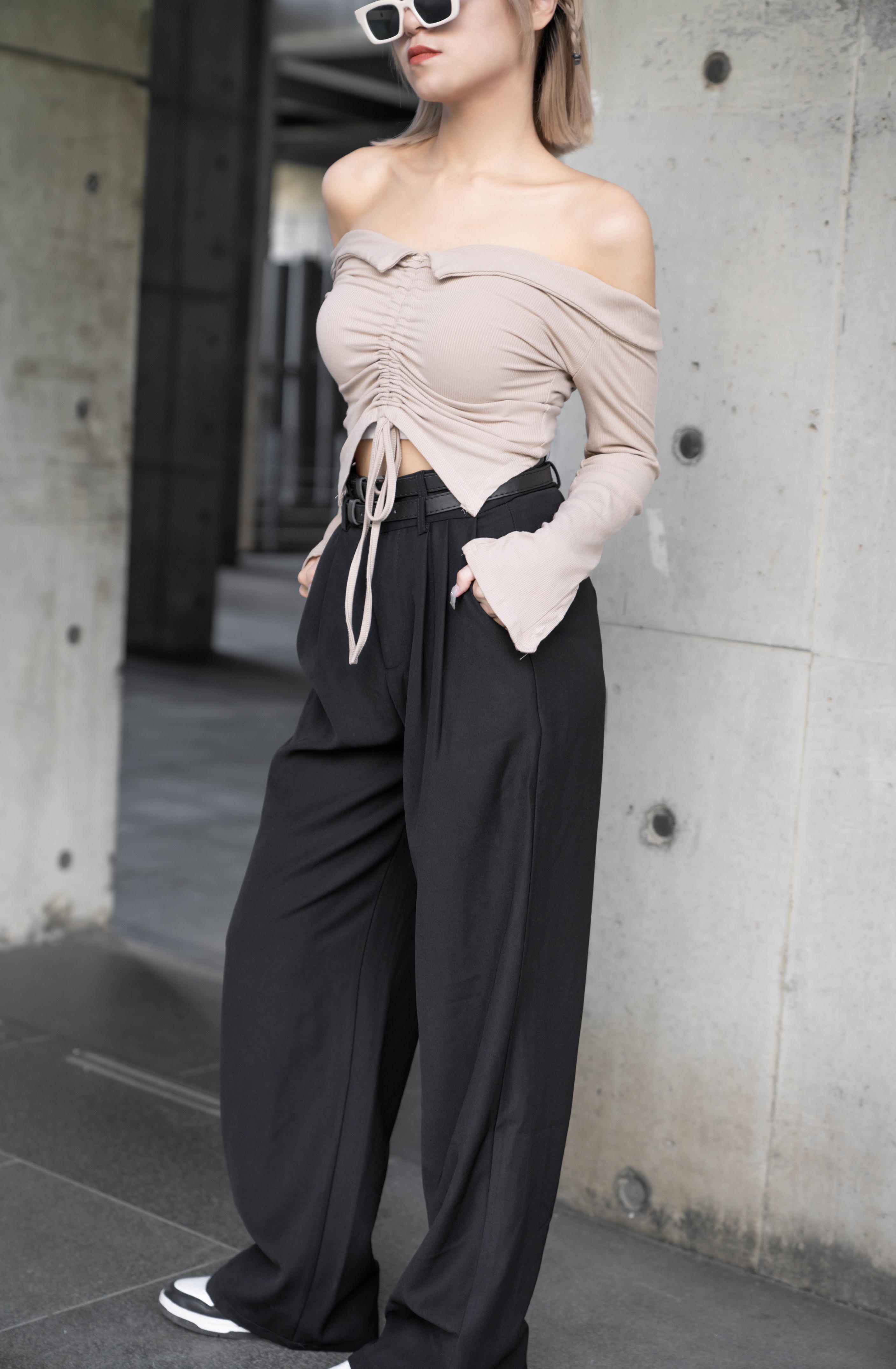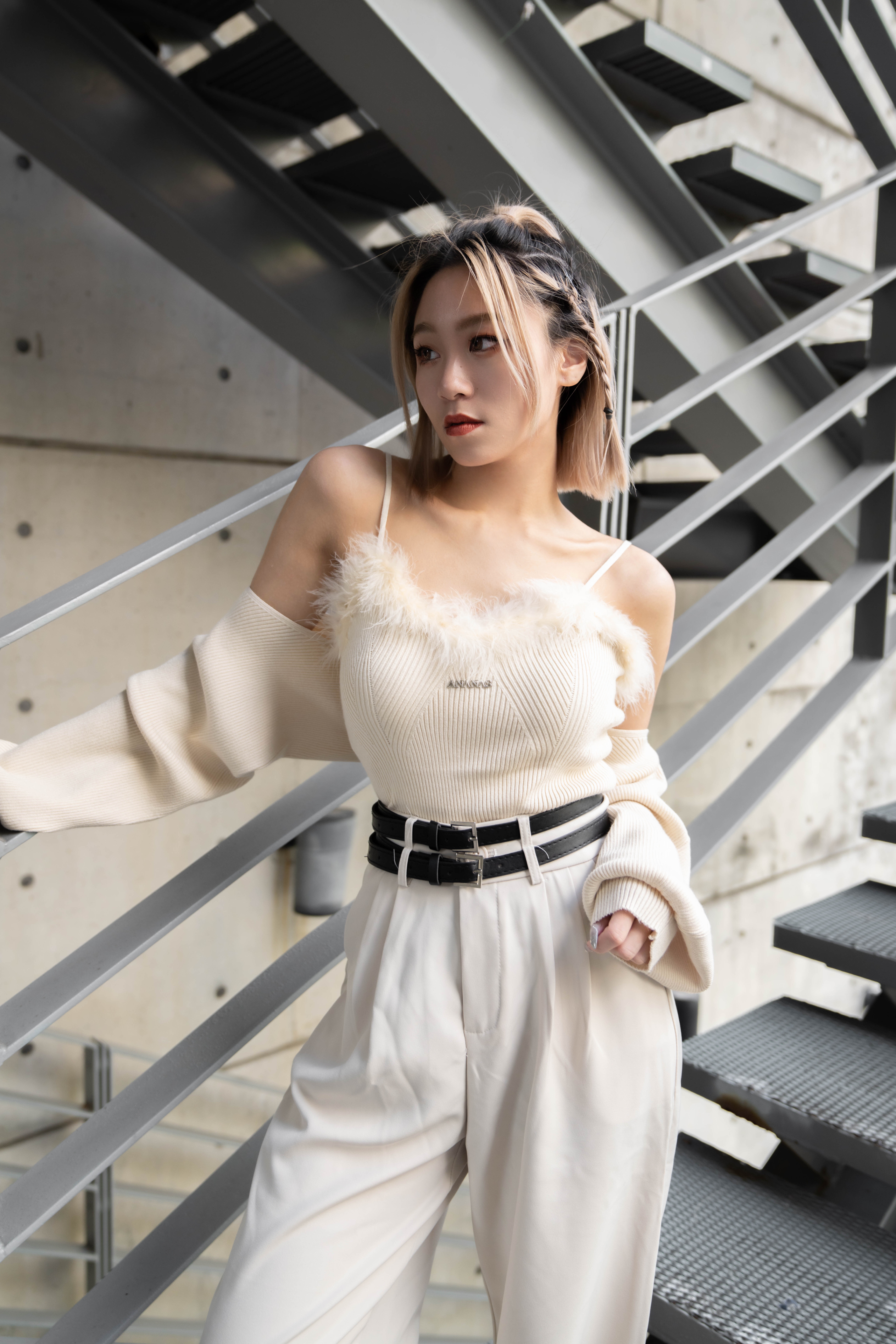 附上雙皮帶作搭配 讓造型更有層次